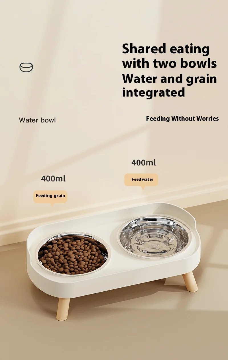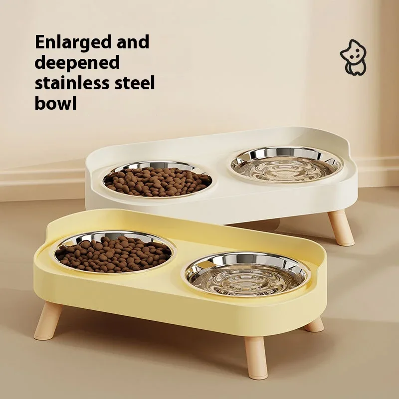 Cuenco para perros y gatos de acero inoxidable de primera calidad, comedero para mascotas con doble diseño antidesprendimiento y base antideslizante y soporte elevado para el cuello