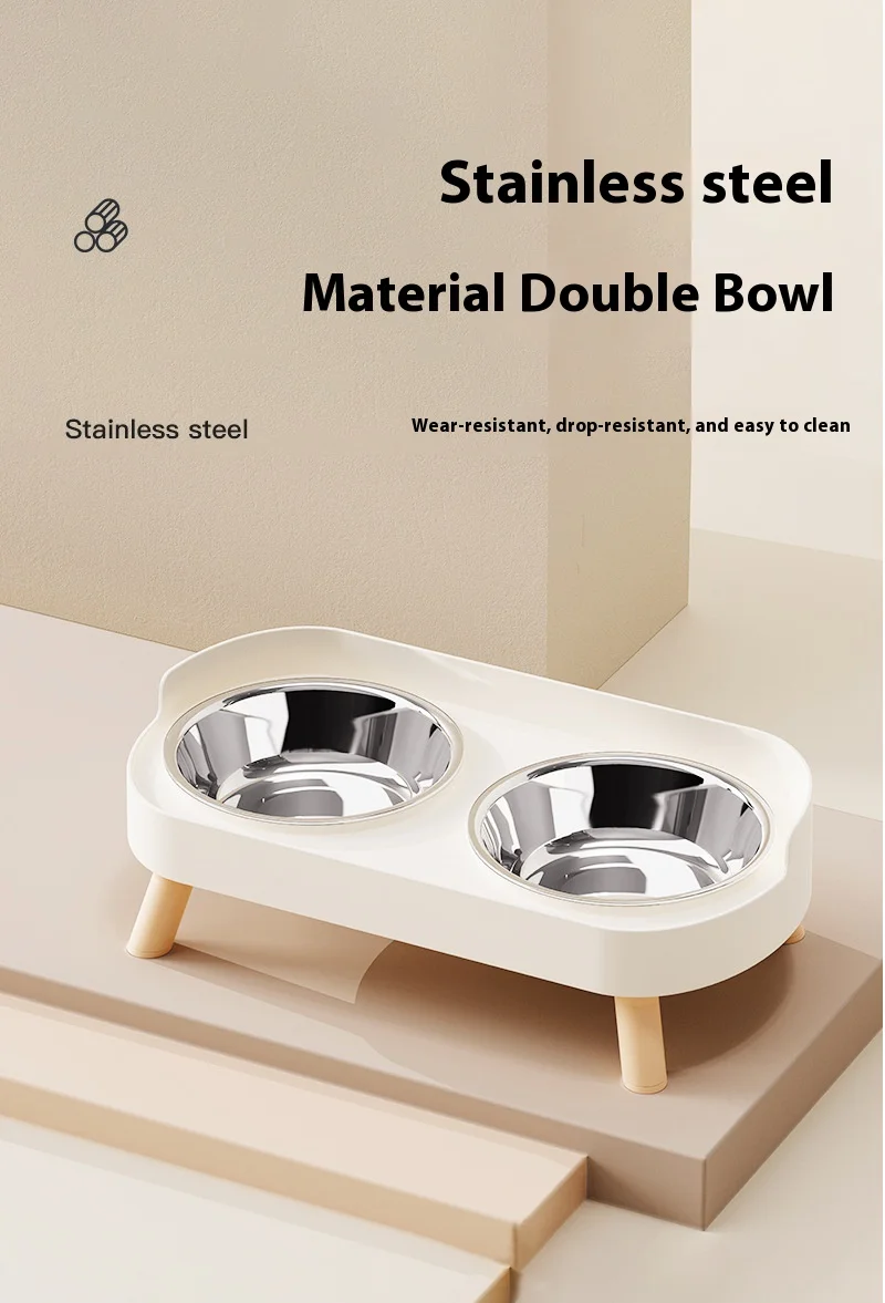 Cuenco para perros y gatos de acero inoxidable de primera calidad, comedero para mascotas con doble diseño antidesprendimiento y base antideslizante y soporte elevado para el cuello