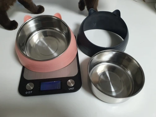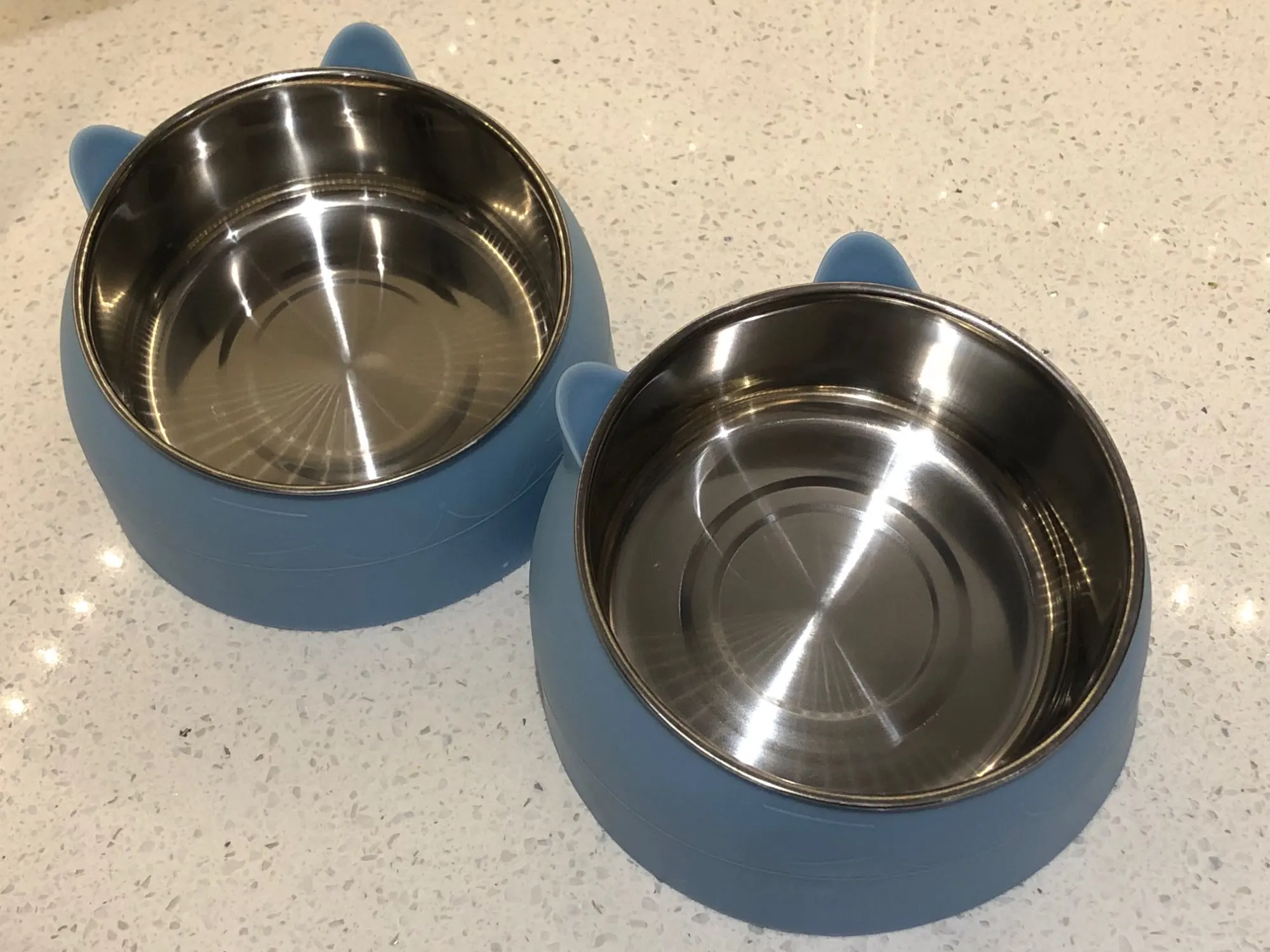 1.Cuenco de acero inoxidable para mascotas, de alta calidad, duradero y fácil de limpiar.