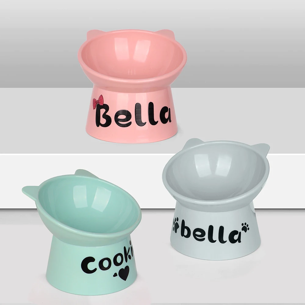 Cuenco personalizado para gatos, cuencos para gatos de pie alto, nombre impreso gratis, alimentador de comida para cachorros y gatitos, col de 15 grados, fuente para beber para mascotas, productos para mascotas