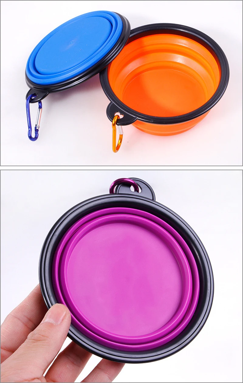 Cada tazón puede contener 12 onzas líquidas (aproximadamente 354,9 mililitros) de agua o 1,5 tazas de comida para mascotas. El tazón para perros se puede plegar en diferentes tamaños, adecuado para almacenar agua y alimentos para todos los perros pequeños y medianos, gatos y otros animales cuando salen.