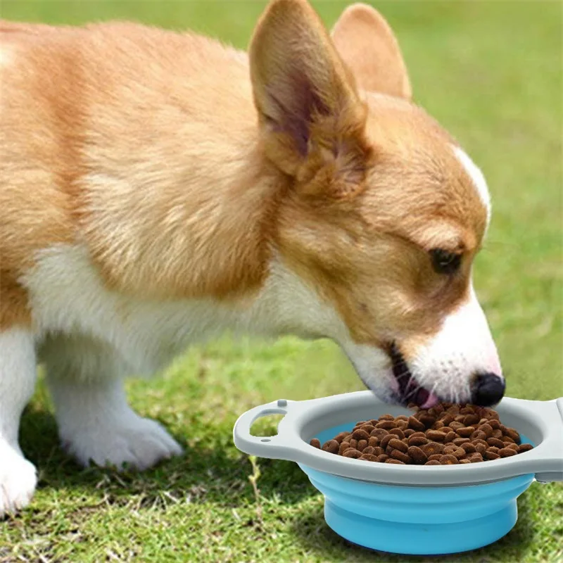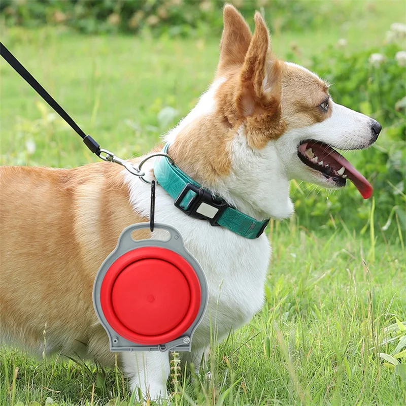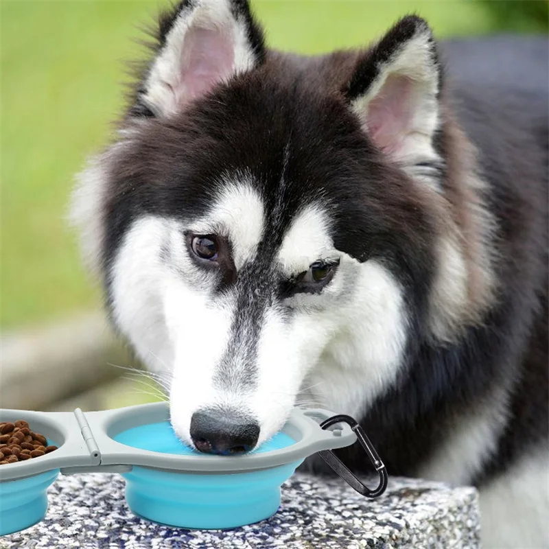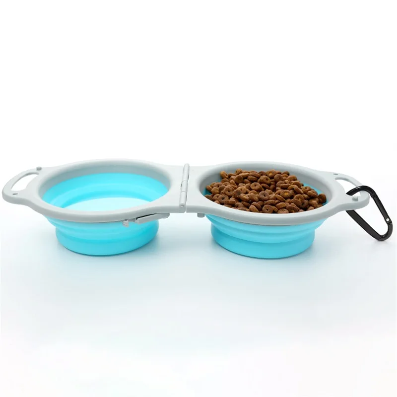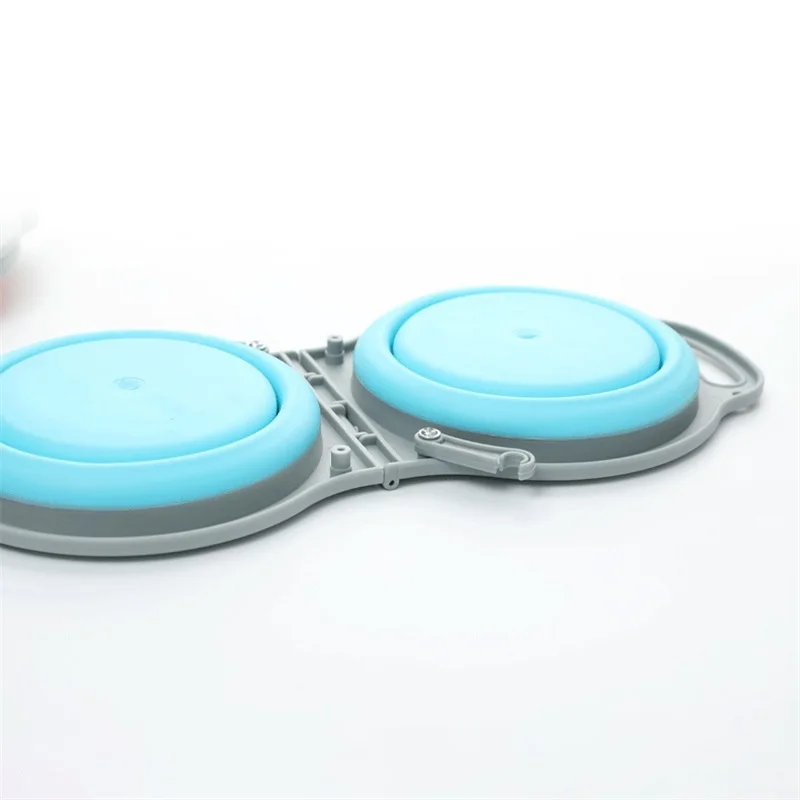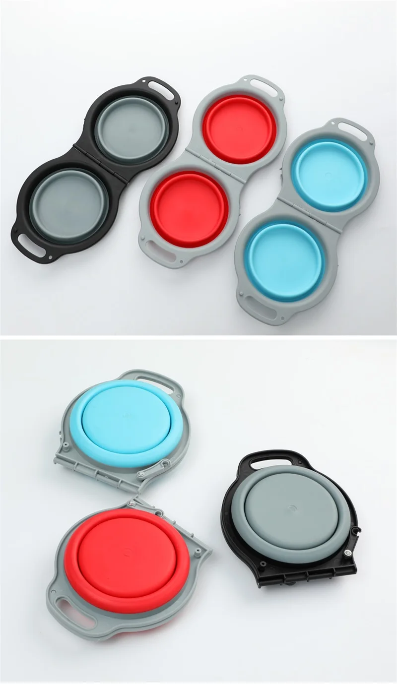 Cuenco plegable multicolor de TPR ABS para mascotas, cuenco doble para exteriores, utensilios de comida, suministros para mascotas, cuenco portátil para perros y montañismo