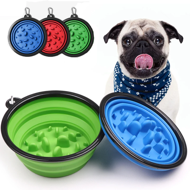 Cuenco de comida para perros, silicona plegable portátil para viajes, cuenco para perros con alimentación lenta, cuenco plegable antiasfixia para perros y gatos