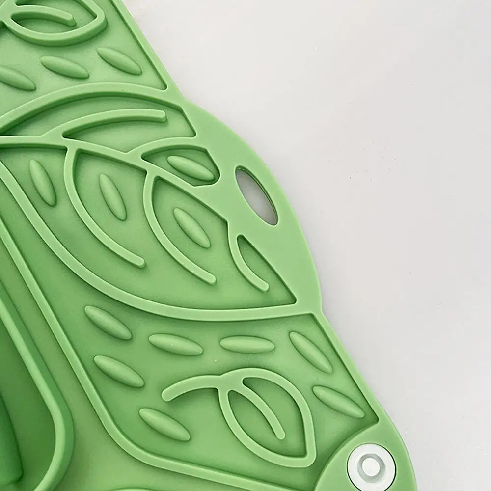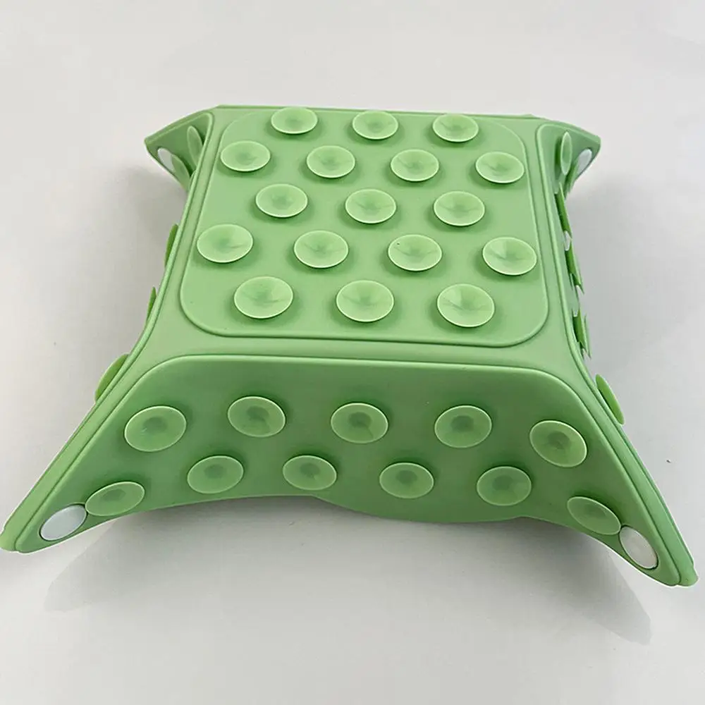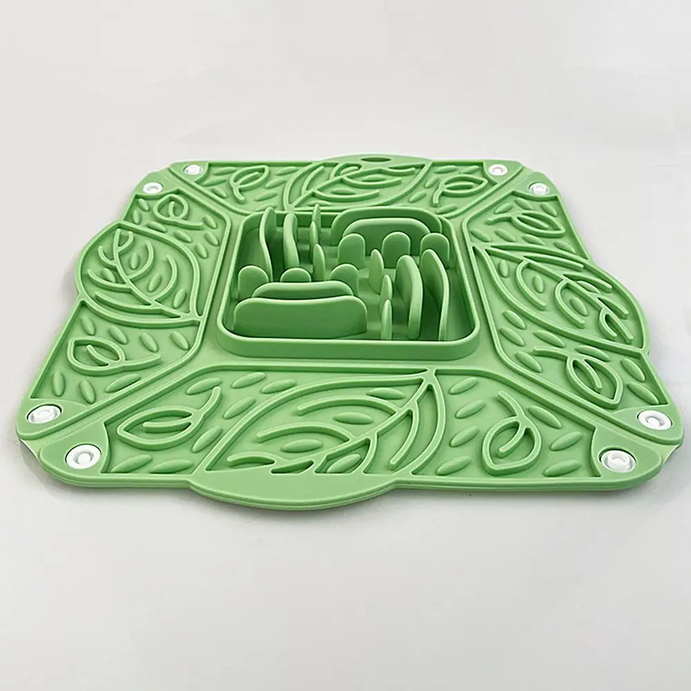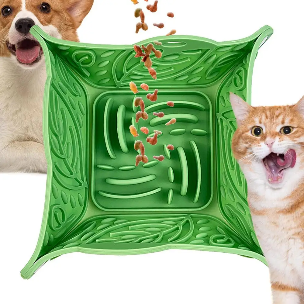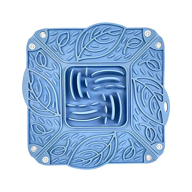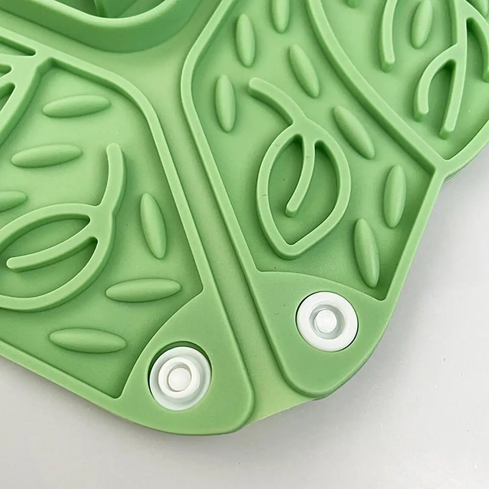 2. Diseño Plegable: esta alfombra para lamer perros se pliega en un tazón de comida lenta, proporcionando una solución de alimentación fácil y portátil. Con bordes a prueba de derrames, es ideal para viajes y aventuras al aire libre. Cuando se despliega, se convierte en una alfombra de comida lenta para lamer golosinas, por lo que es una adición versátil a la rutina de su mascota.