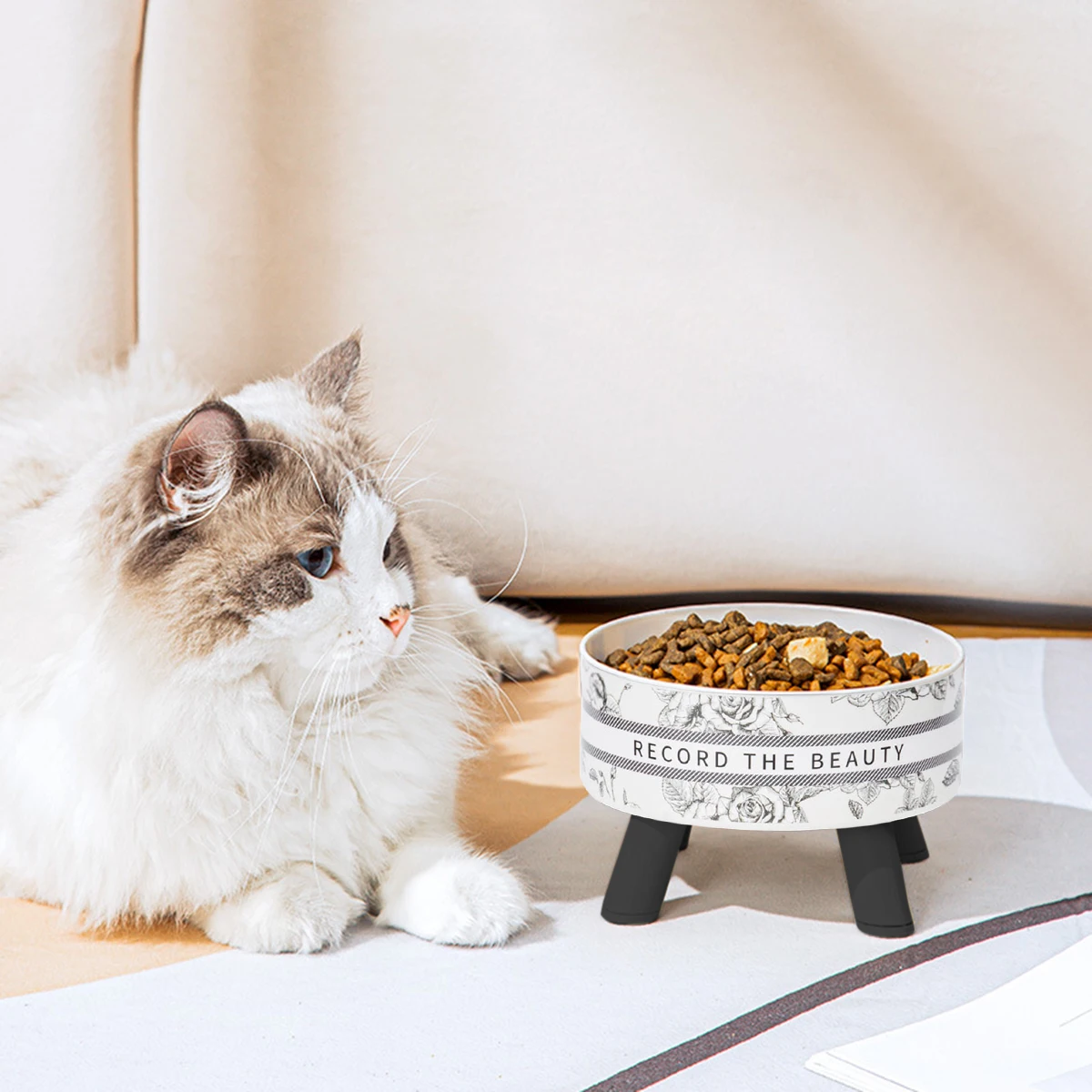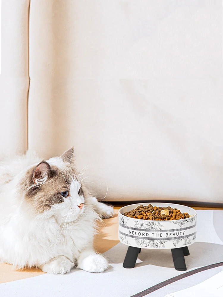 2: La altura elevada del cuenco ayuda a proteger la columna vertebral de su gato y reduce la presión sobre sus articulaciones para una alimentación más cómoda.La profundidad superficial y el ancho del cuenco son aptos para bigotes y perfectos para gatos de cara plana.