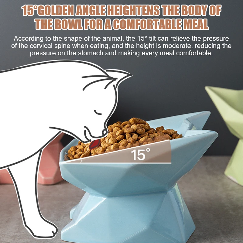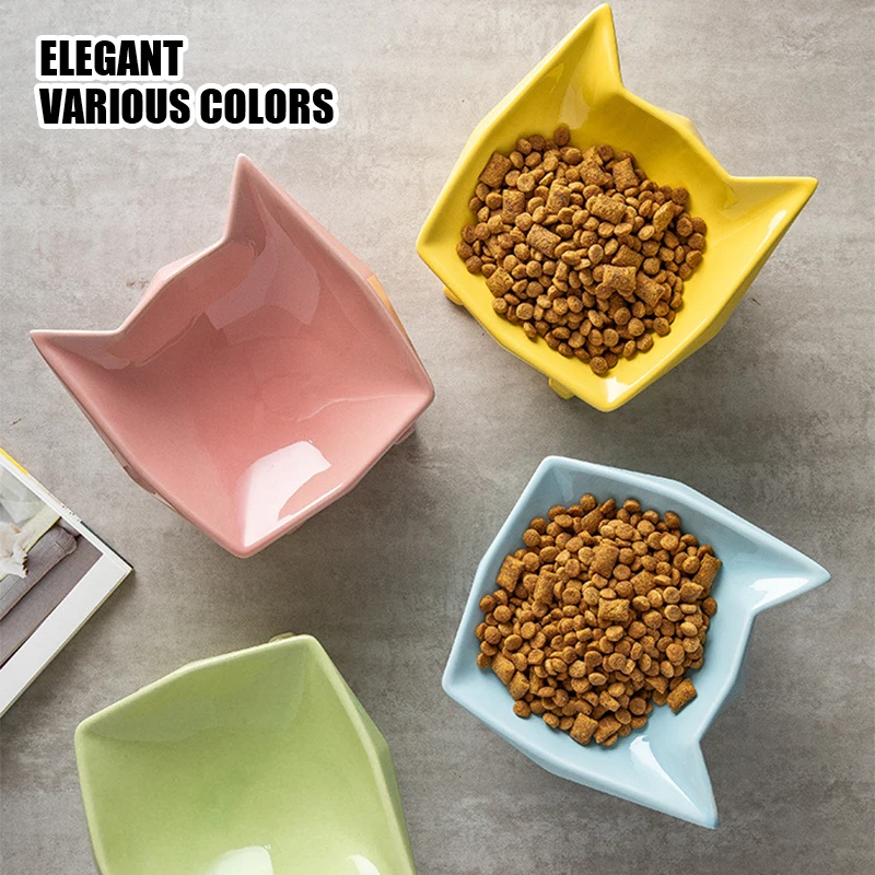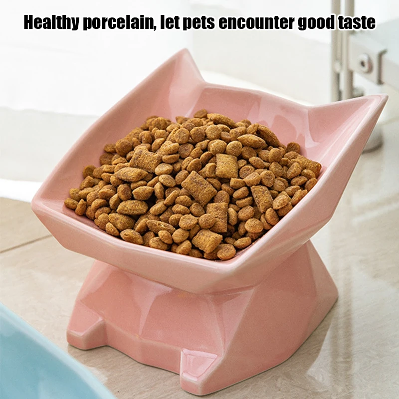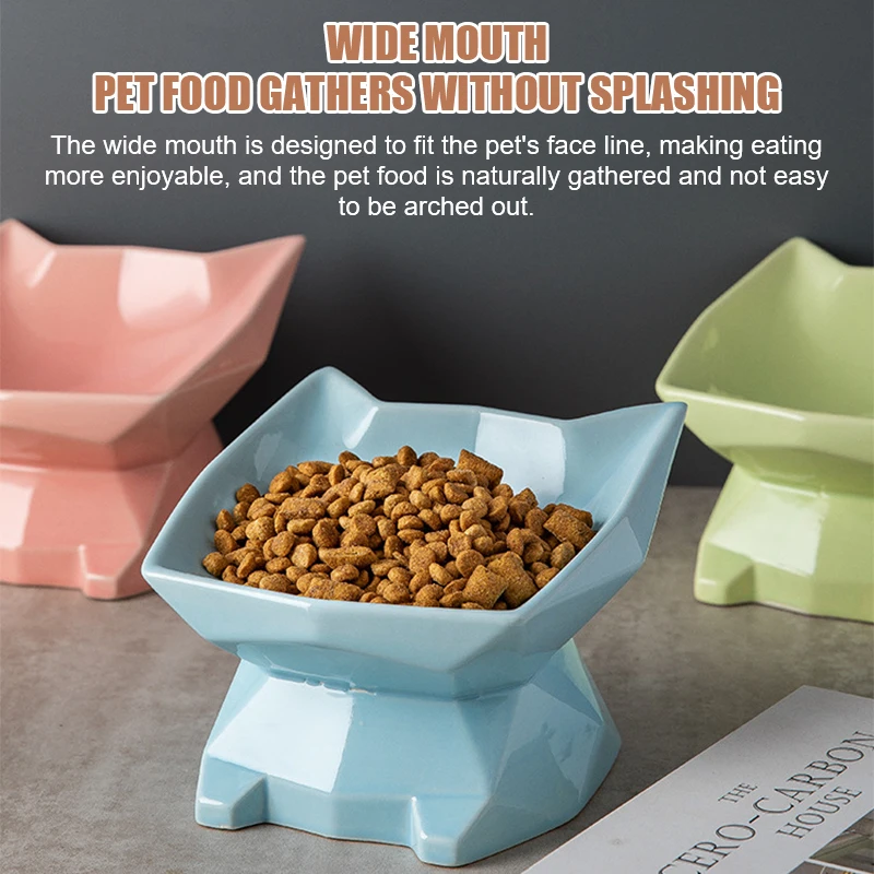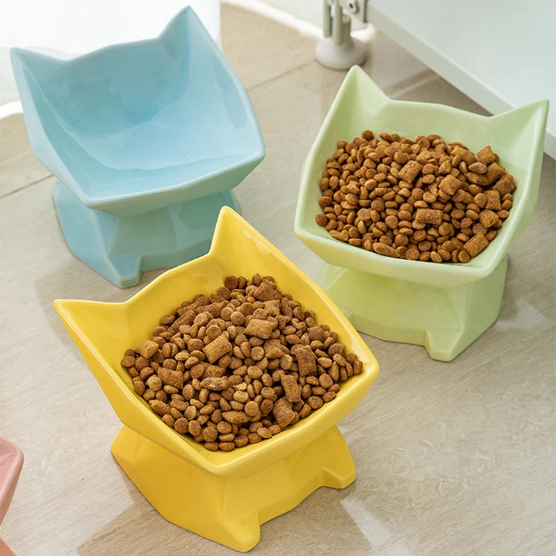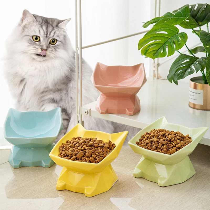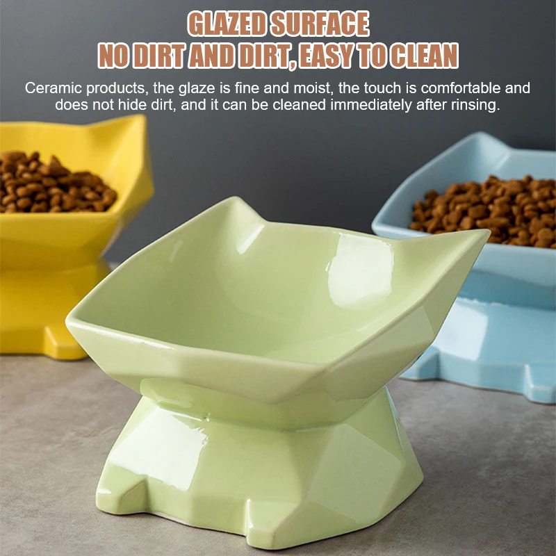Cuenco rómbico de pie alto para gato, cuencos para perro, Protector de cuello, comida para mascotas, cuenco de agua, suministros de Alimentación de Mascotas de cerámica, cuenco de postre para mascotas