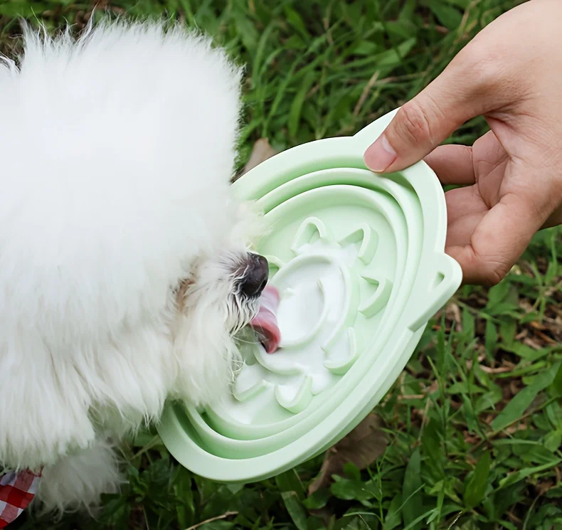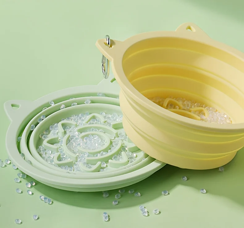 Cuenco de silicona para perros de 450ml, alimentador de comida lenta para perros, cuenco de agua para comida de perros de viaje al aire libre con mosquetón, suministros para mascotas
