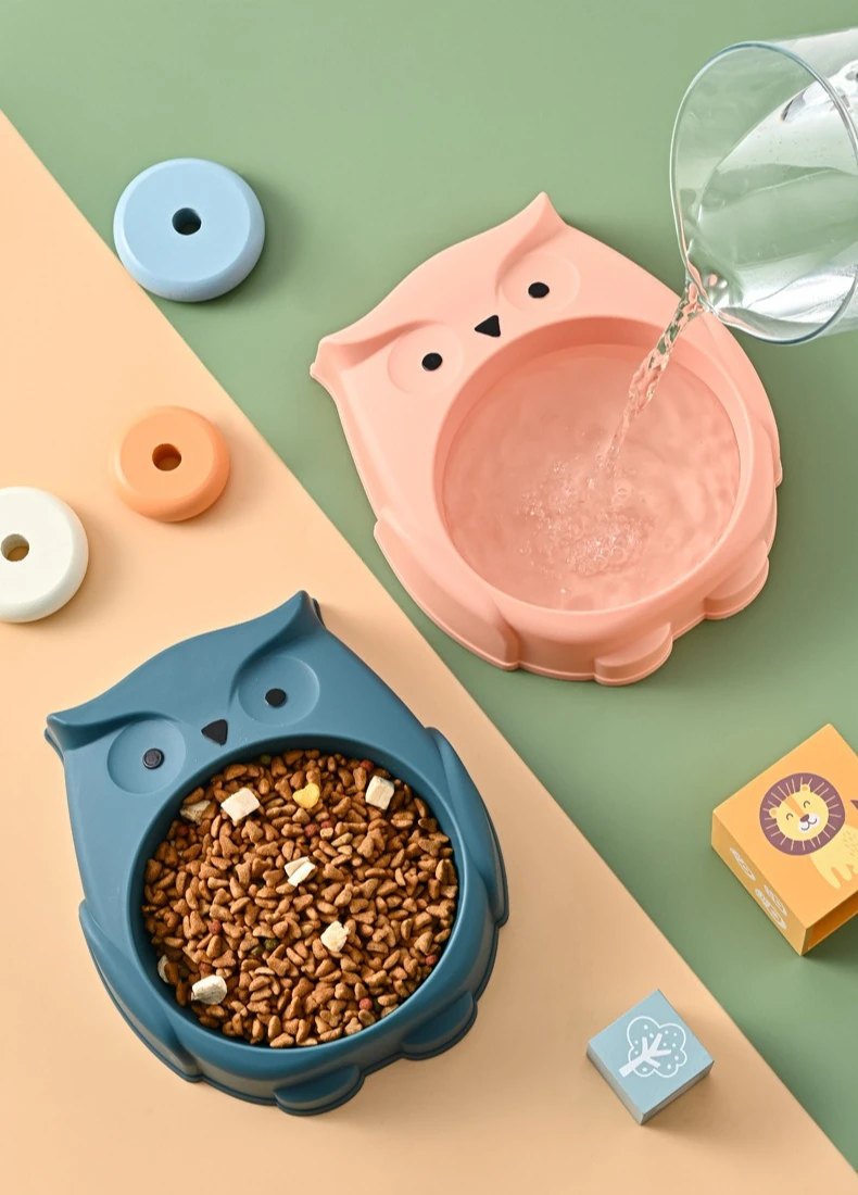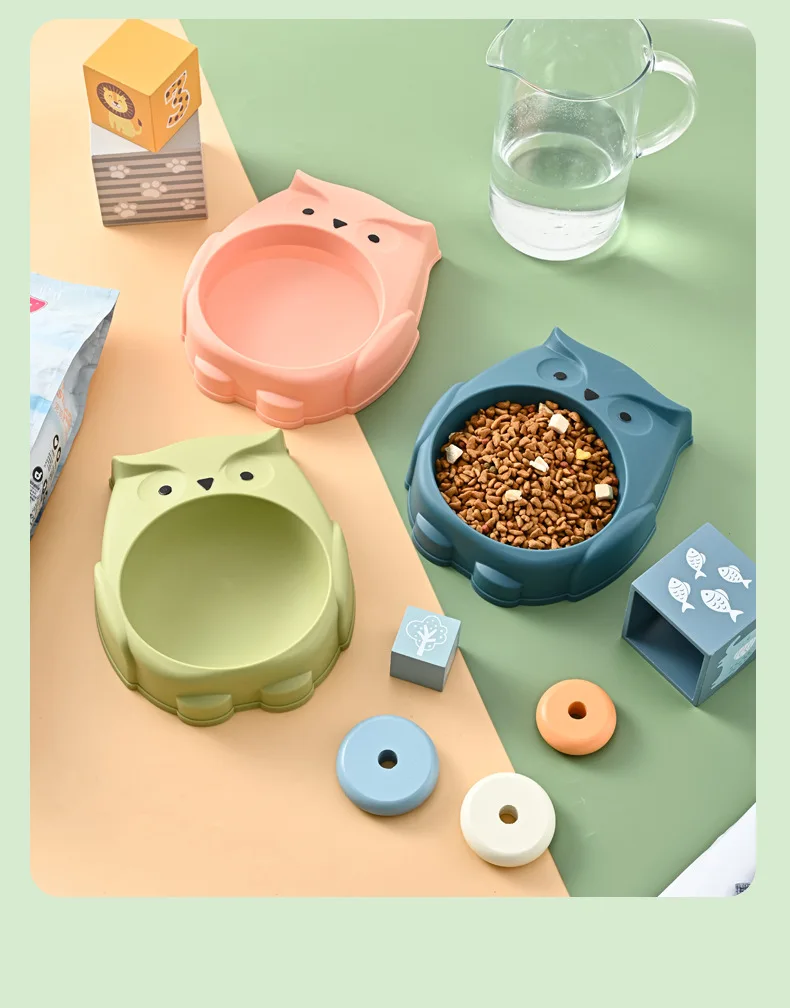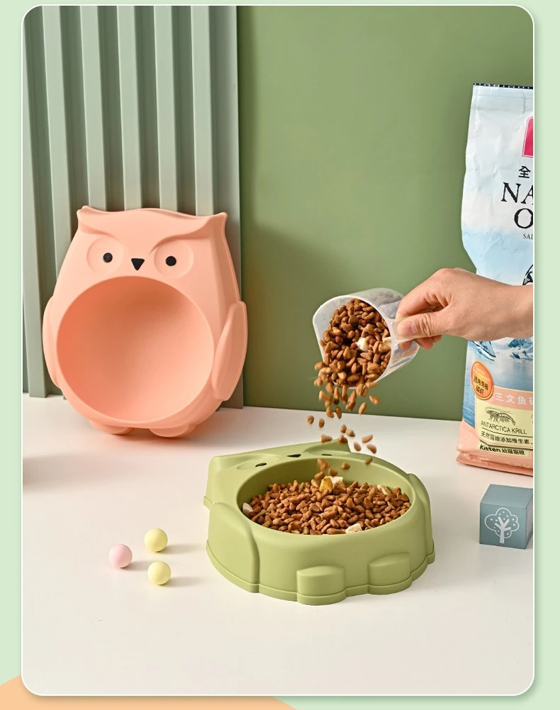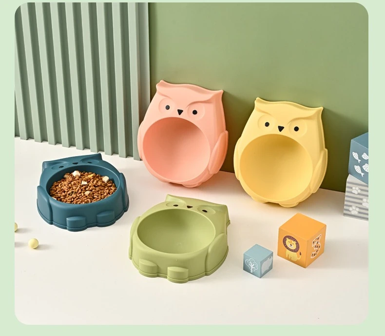 Cuencos alimentadores para mascotas para gatos, platos antigolpes de plástico, contenedor de agua para perros, suministros para beber para gatitos, vajilla con forma de búho para cachorros