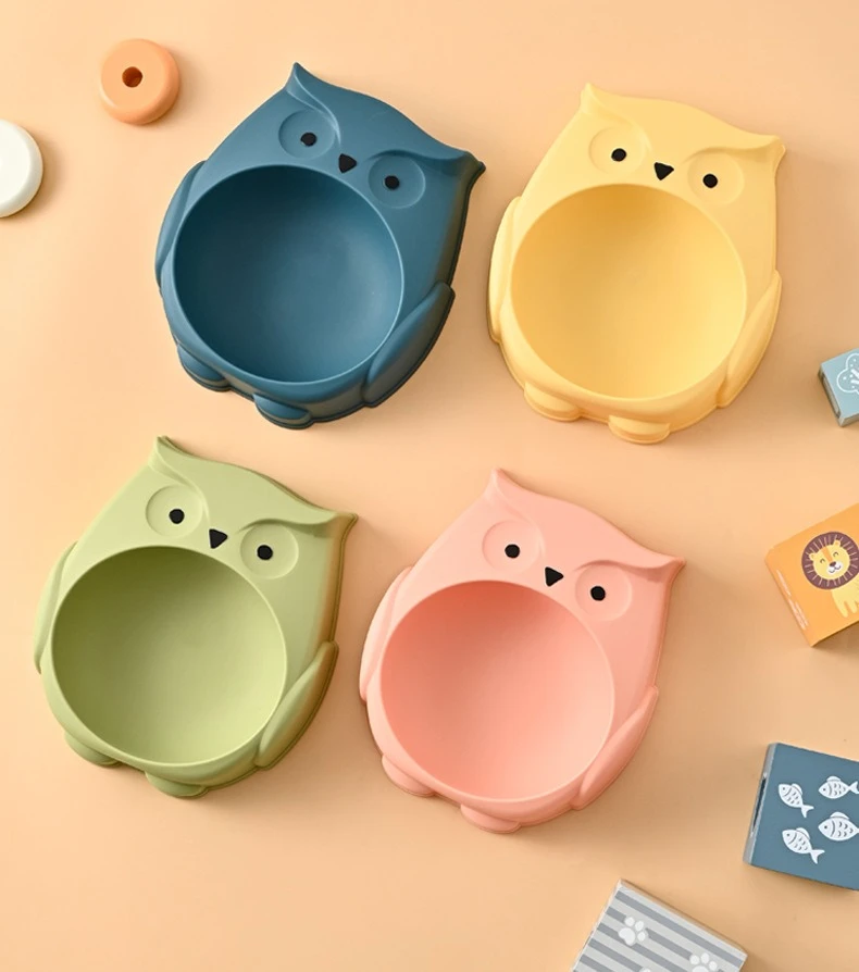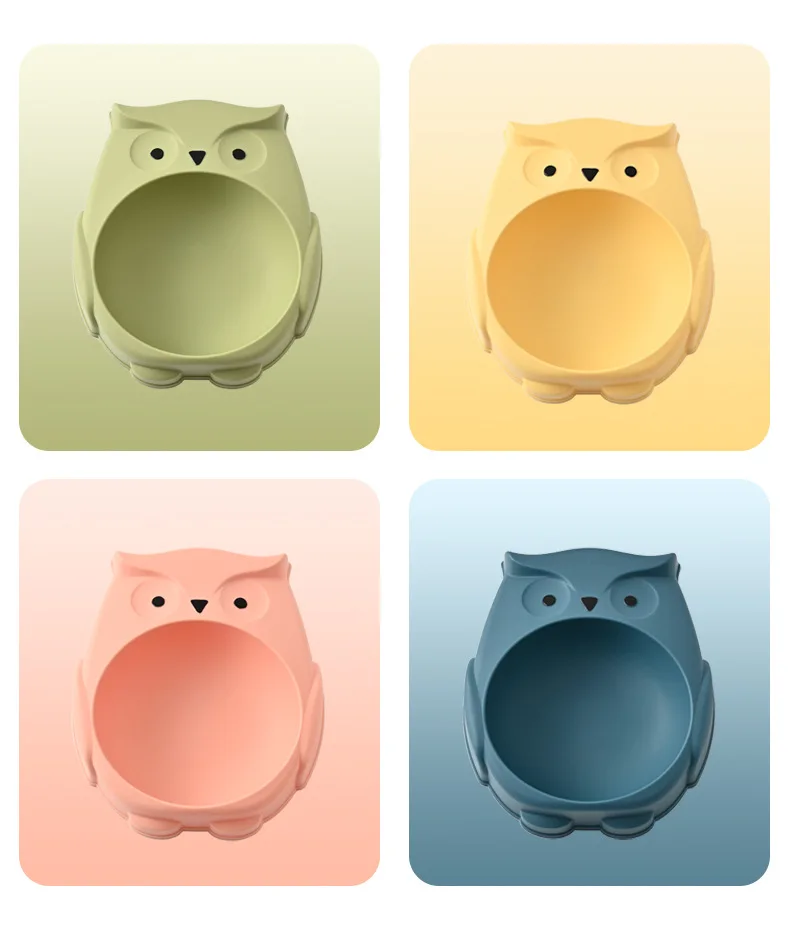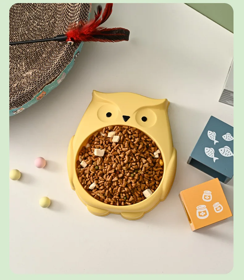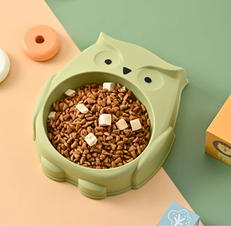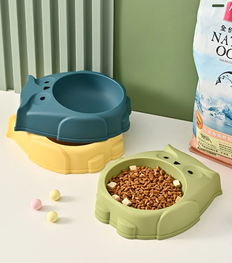 Cuencos alimentadores para mascotas para gatos, platos antigolpes de plástico, contenedor de agua para perros, suministros para beber para gatitos, vajilla con forma de búho para cachorros
