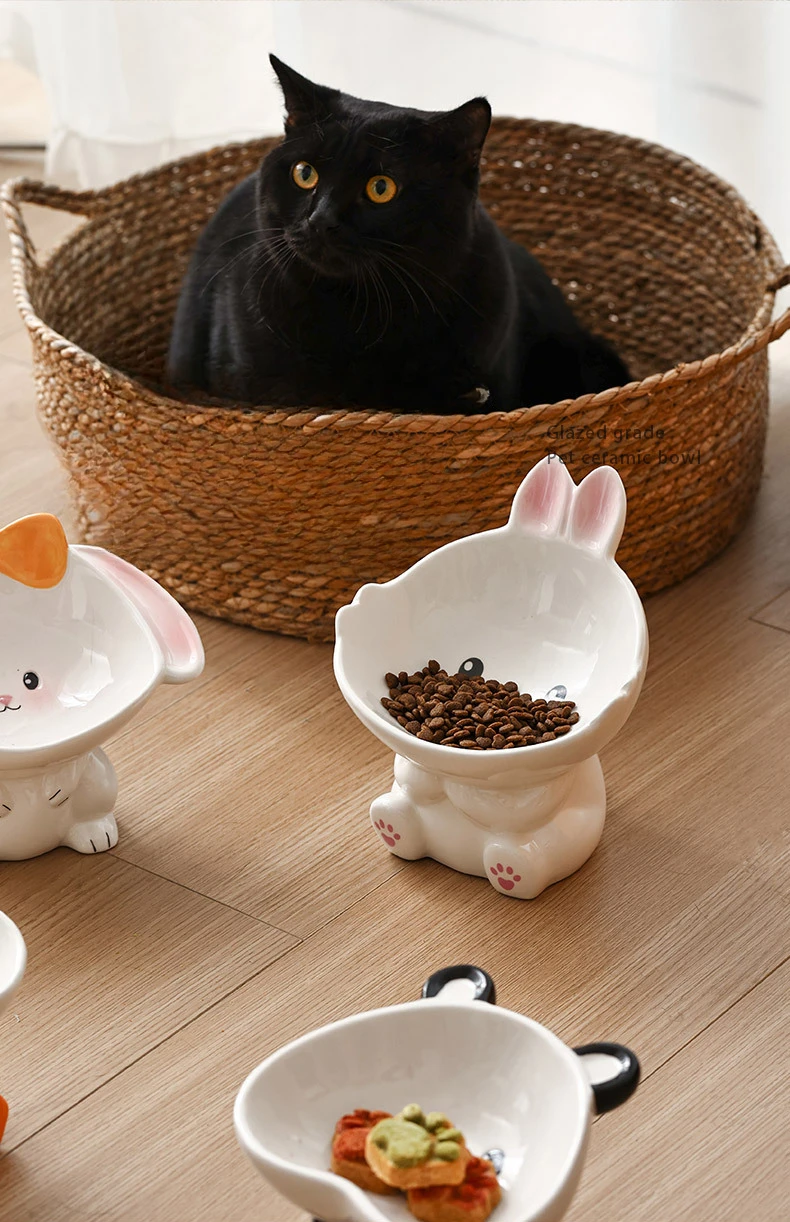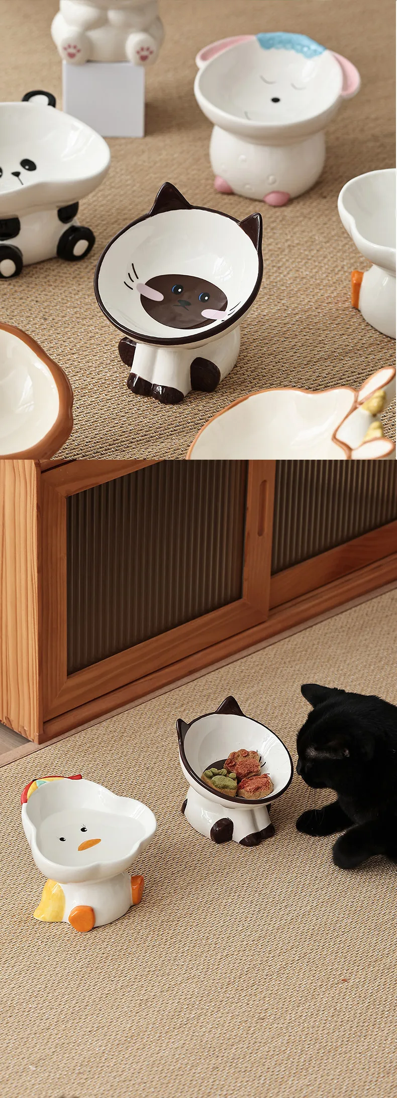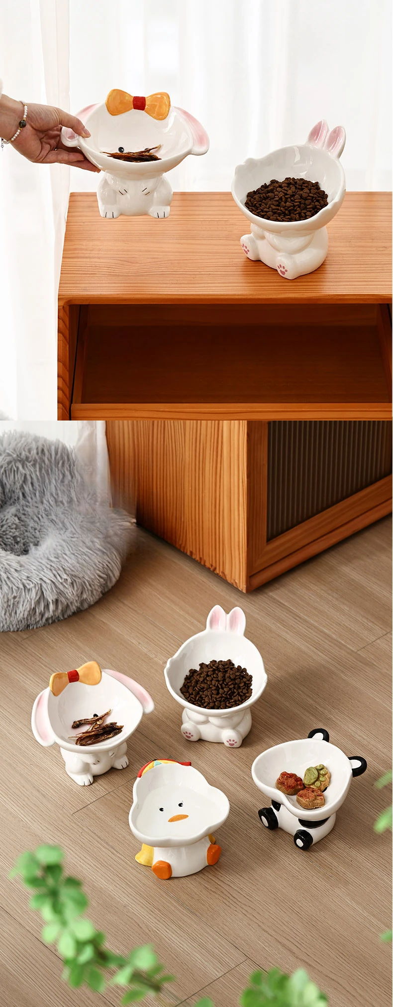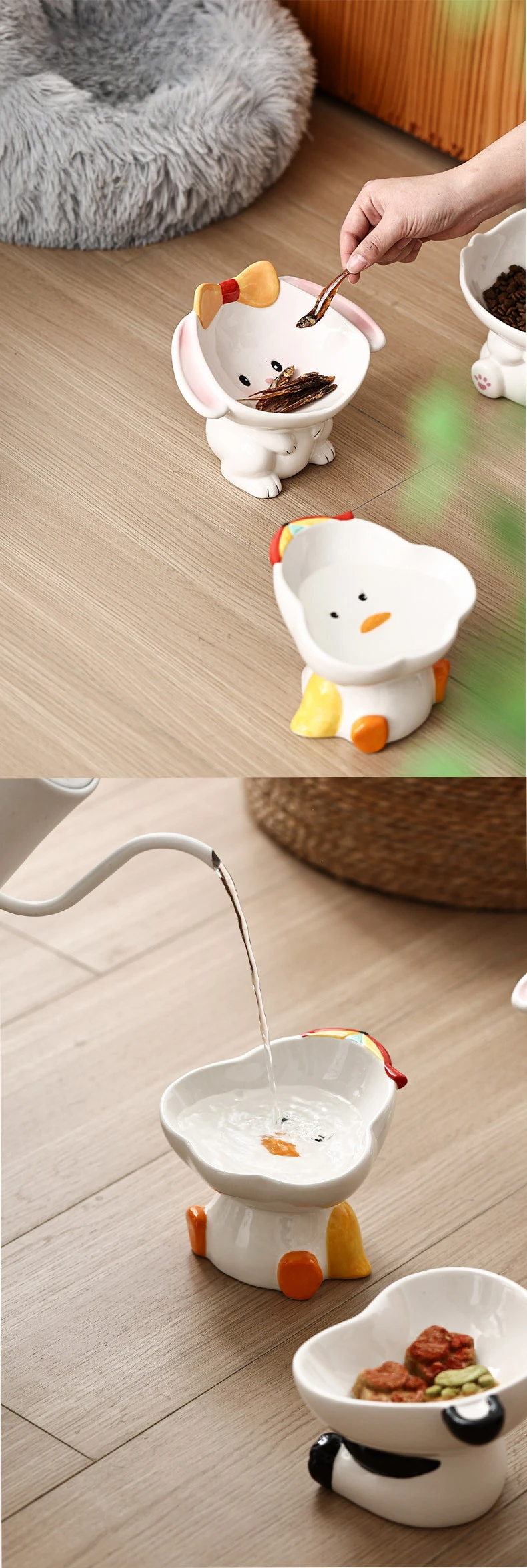 Cuencos de cerámica para gatos, bonitos platos para cachorros y gatitos, protectores de columna Cervical, cuencos de comida para mascotas, alimentador, contenedor de agua, vajilla para perros