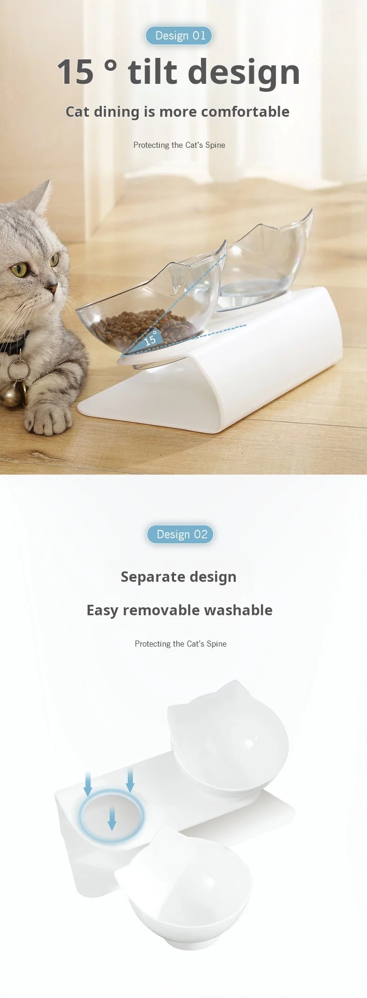 Cuencos para comedero para gatos, comedero para mascotas, comedero para perros, protector para el cuello con inclinación elevada de 15 grados, cuenco de agua con soporte, alimentación para gatos y gatitos