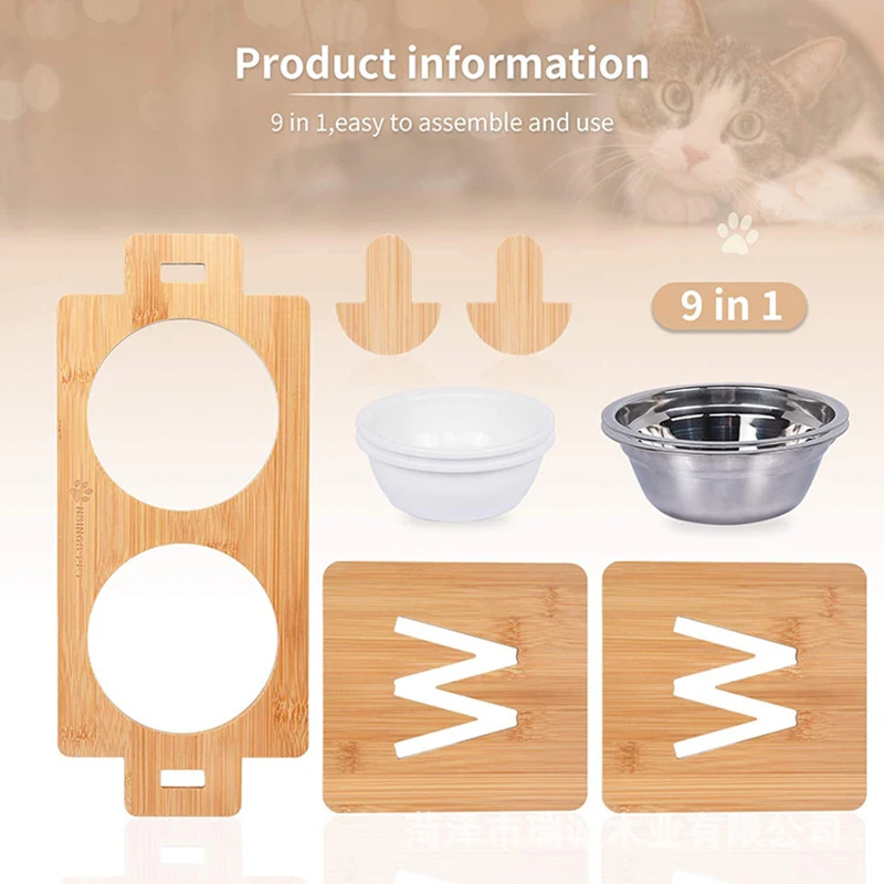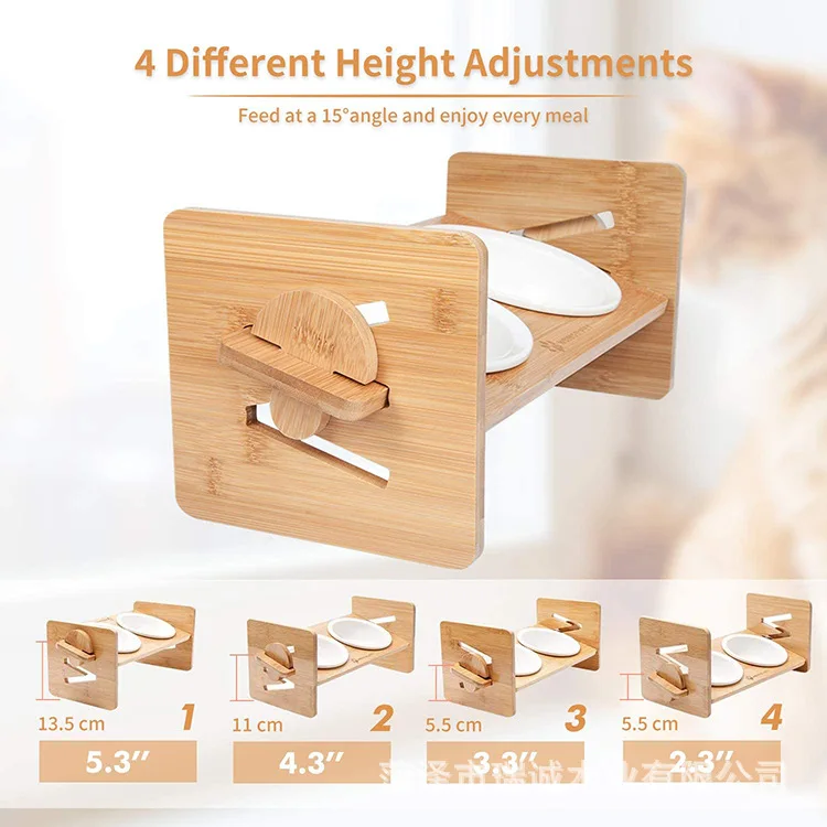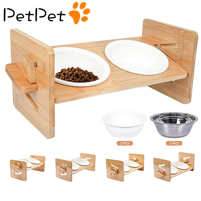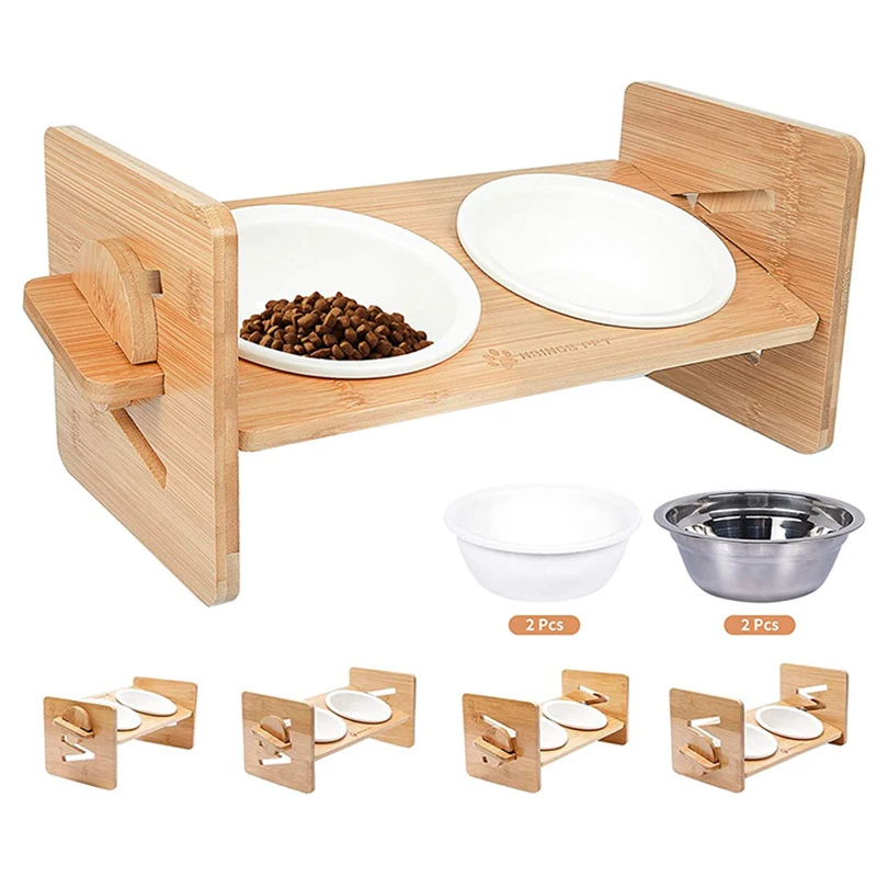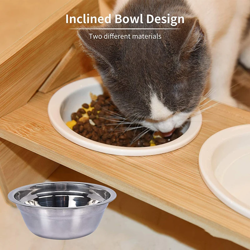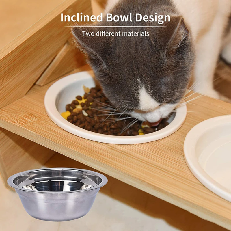Cuencos de comida para gatos, cuencos de agua y comida elevada inclinados de 15 °, alimentador sin estrés para mascotas, elevadores ajustables, platos de cerámica para alimentación de perros