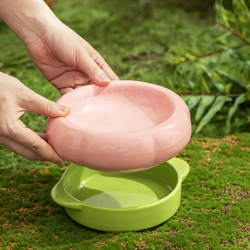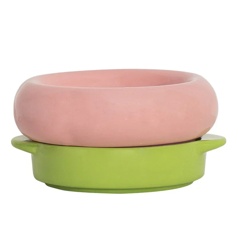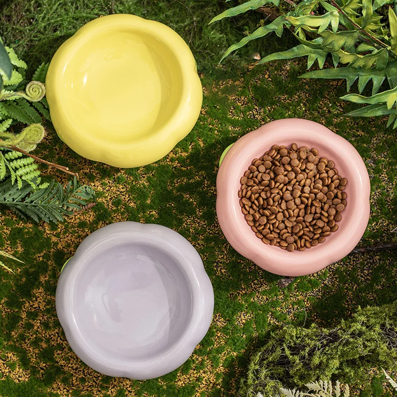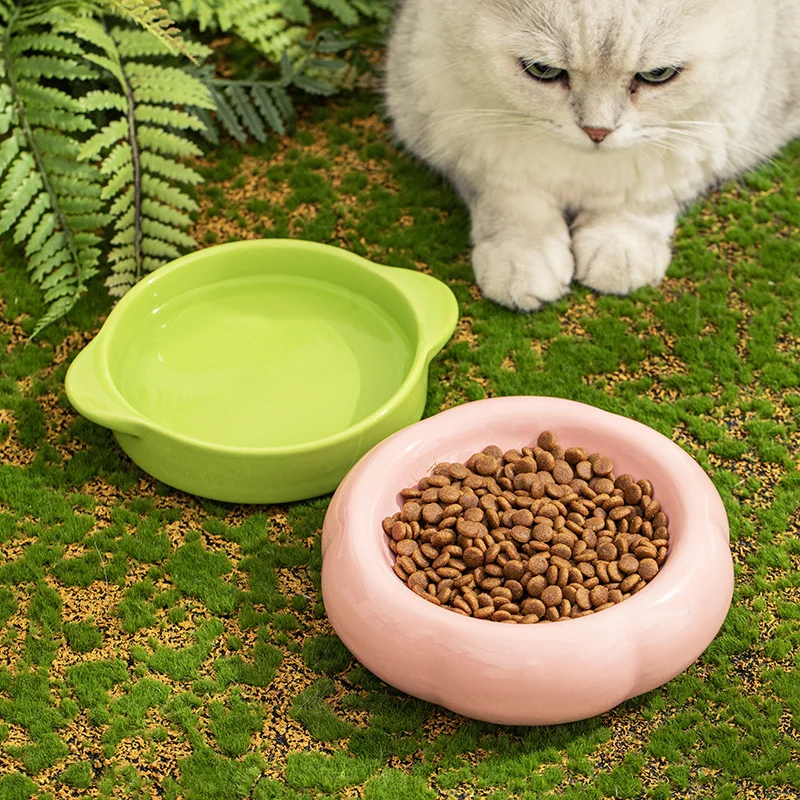 Cuencos creativos de cerámica para agua potable, protección para el cuello antirretroceso, boca plana, cuenco para gatos de doble capa, suministros, 1 ud.