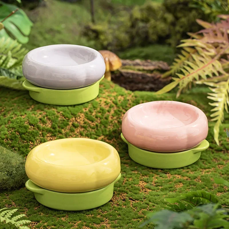 Cuencos creativos de cerámica para comida y agua potable, protección antiobturna para el cuello, boca plana, cuenco para gatos de doble capa, suministros, 1 ud.