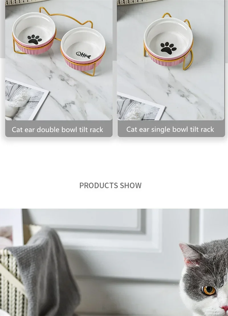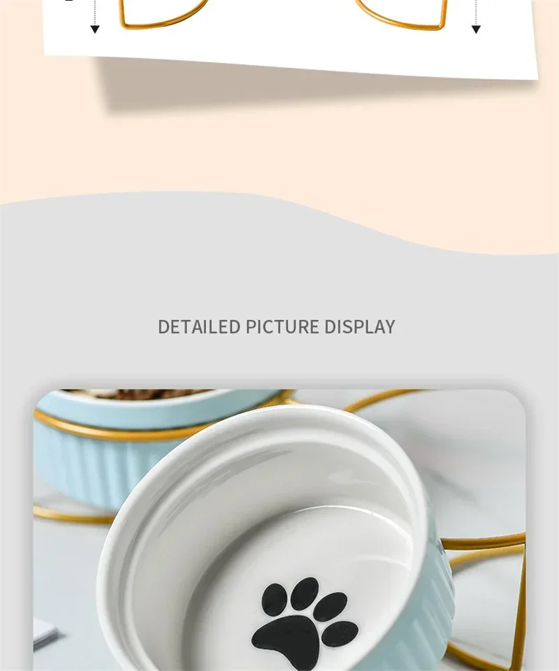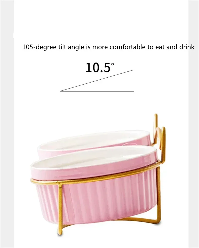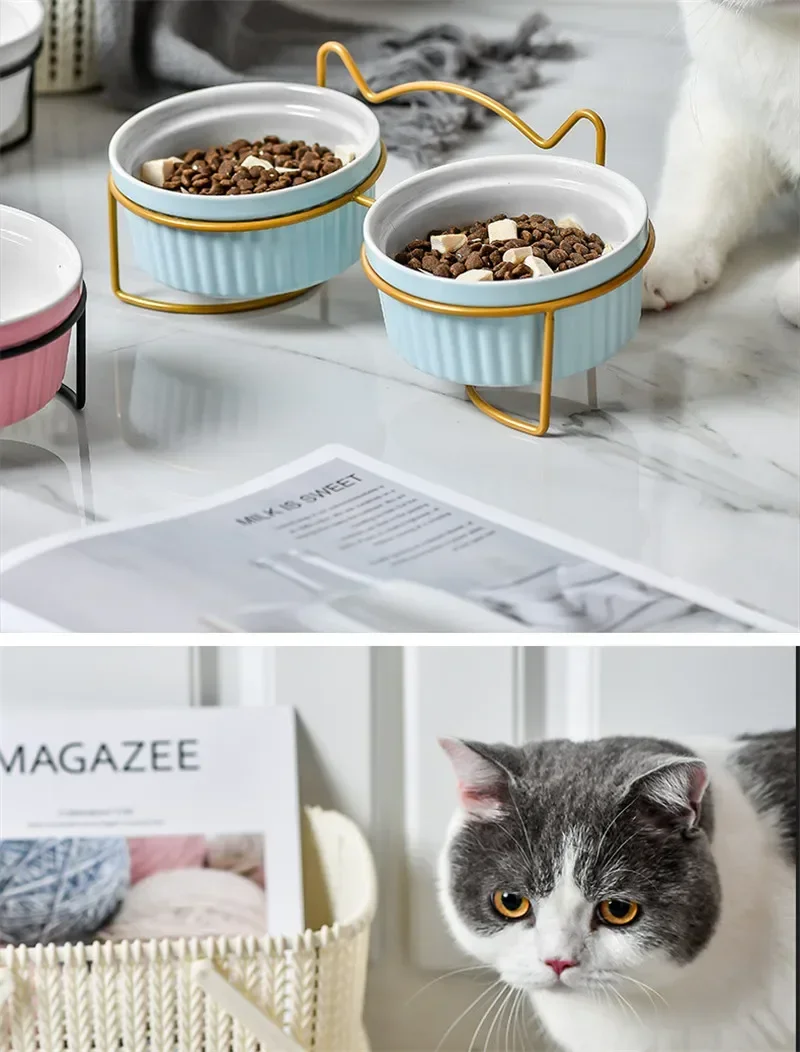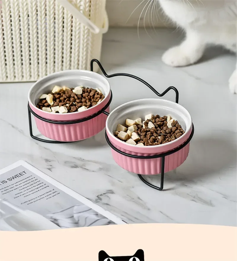 Cuencos dobles de cerámica para mascotas con marco de hierro, cuencos de alimentación antideslizantes para perros y gatos, platos de agua y comida, accesorios para perros