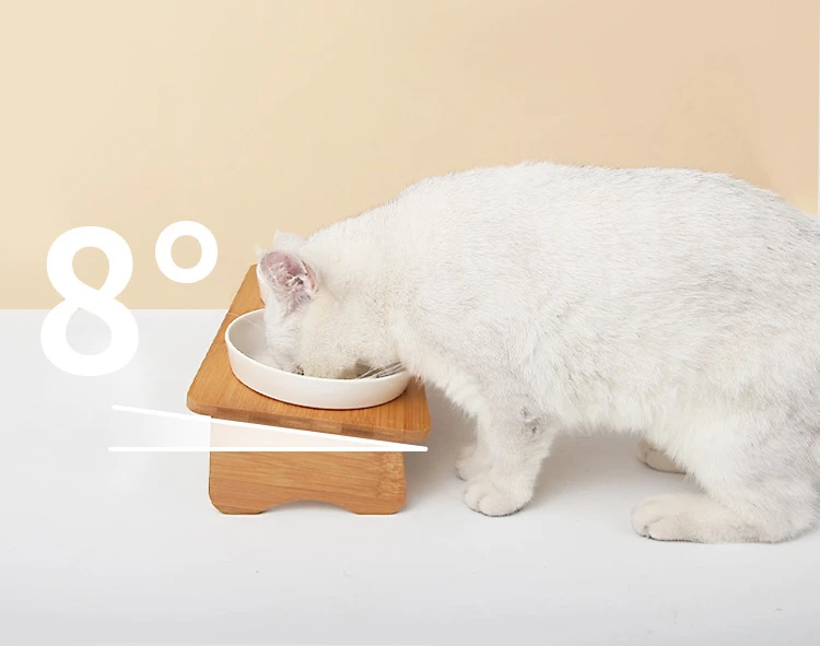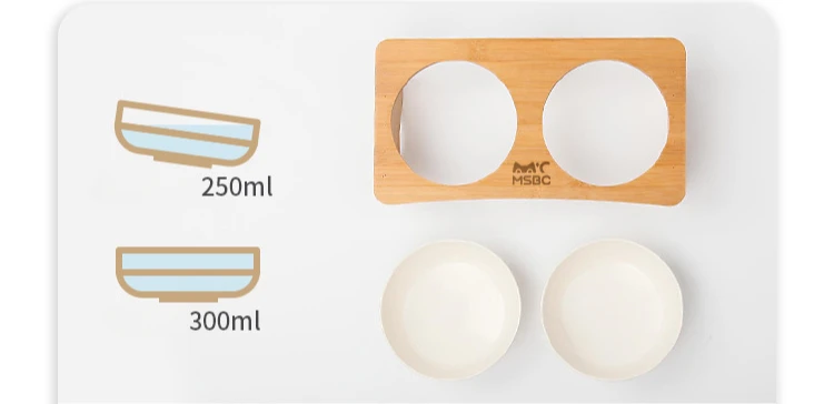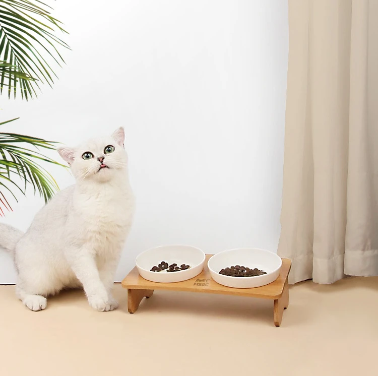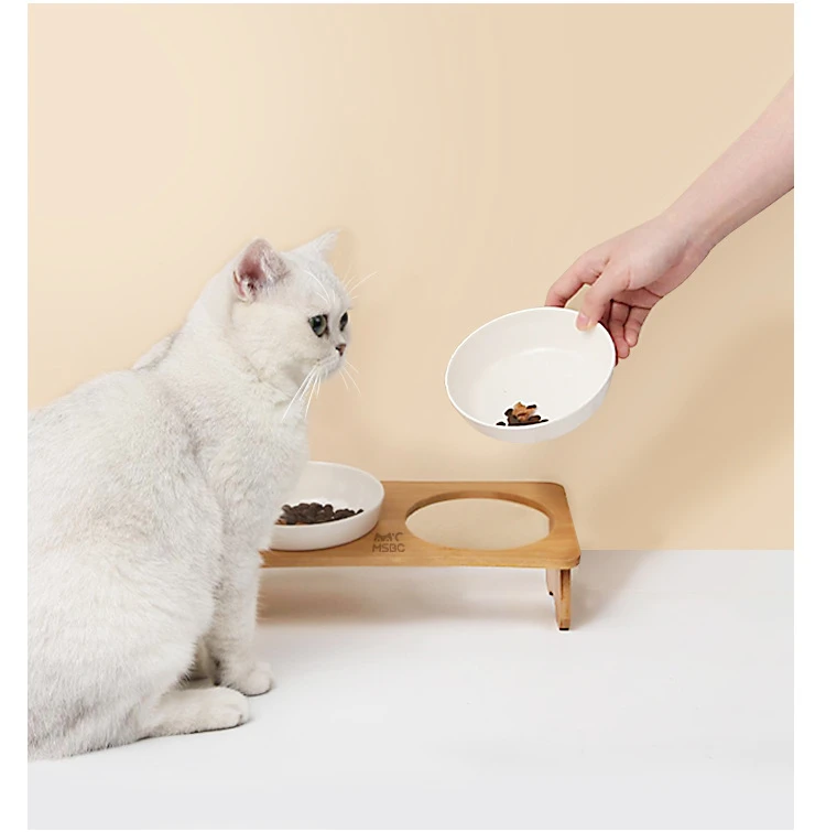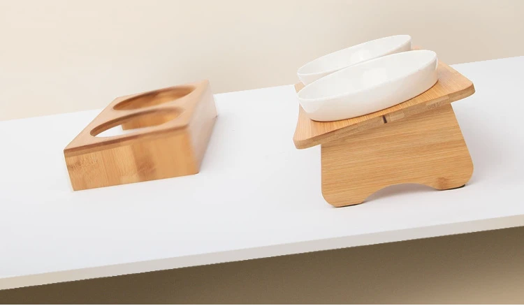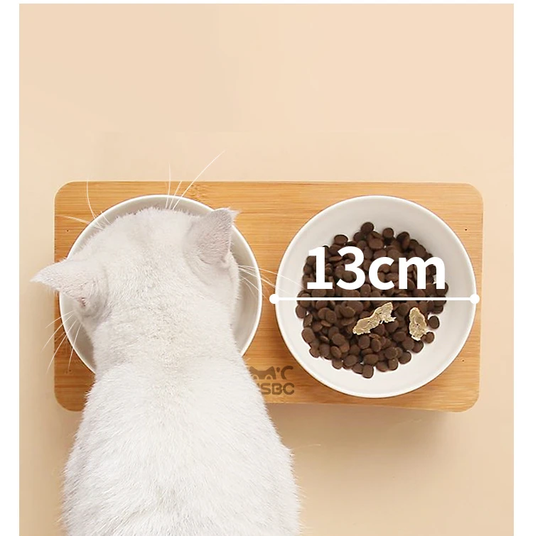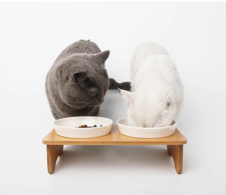 Cuencos dobles de comida para gatos con marco de bambú, vajilla para beber para mascotas, dispensador de agua Cervical protector para el hogar, contenedor alimentador para cachorros
