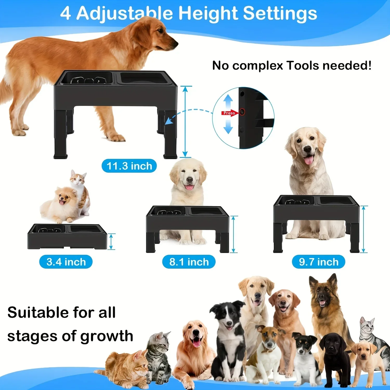 El cuenco elevado para perros se puede ajustar a (3,4"-11,3") para perros y gatos grandes, medianos y pequeños. Este cuenco elevado para perros reduce eficazmente la tensión en el cuello, las articulaciones y la columna.Y también ayuda a promover una digestión saludable al proporcionar una altura cómoda para acceder a los alimentos y el agua.