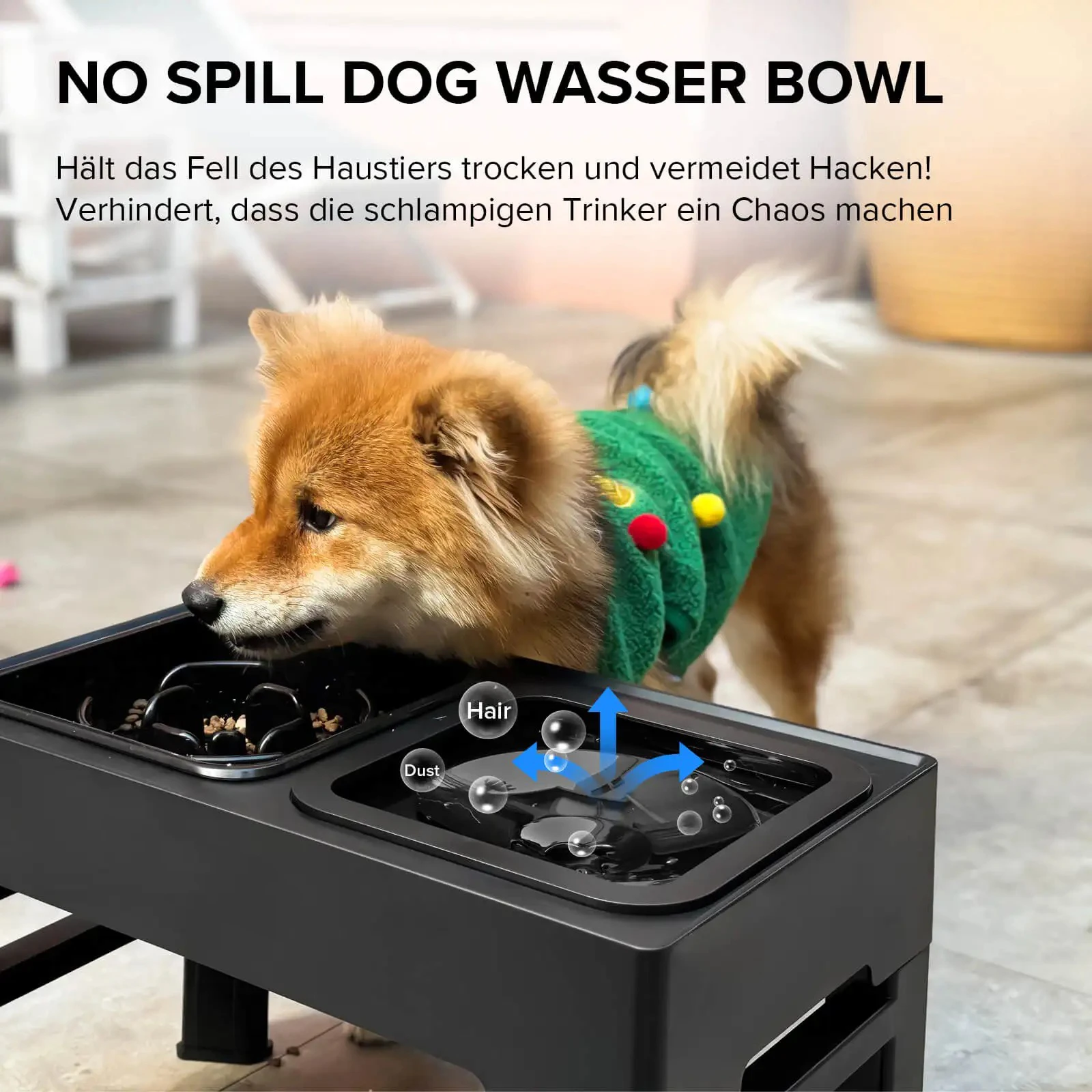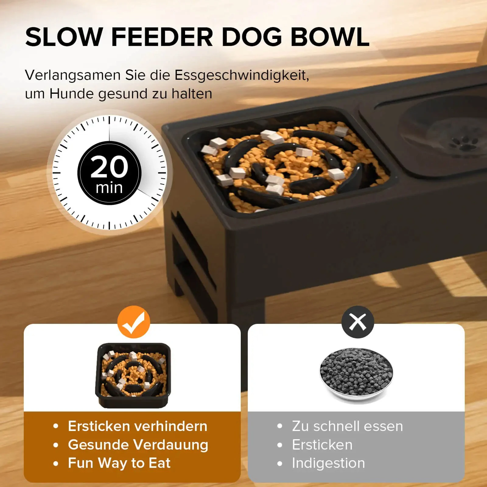 Fácil de limpiar y duradero: nuestra estación de alimentación para perros se compone de un recipiente de agua y un comedero lento.El material para los tazones de comida para mascotas, ya que es apto para lavavajillas, higiénico, sin BPA y duradero.Simplemente lave el cuenco para perros a mano o en el lavavajillas y limpie la superficie del soporte de plástico para perros.