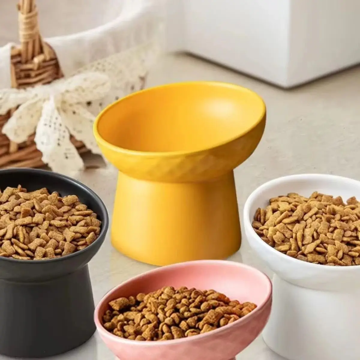 Cuencos elevados de cerámica para gatos, cuencos de comida para gatos para el cuello, soporte cómodo, alimentador elevado, solución de comedor para mascotas para gatos de interior