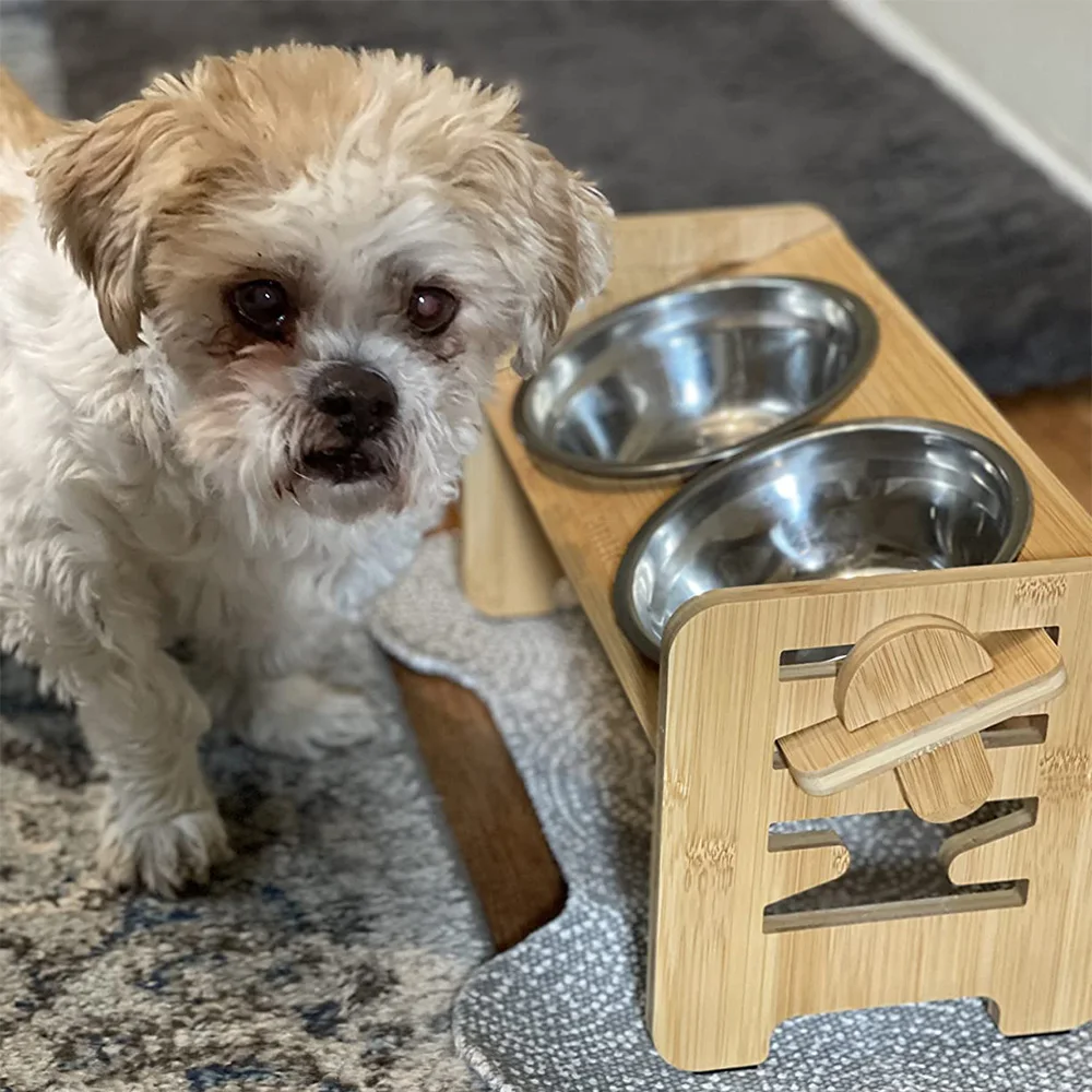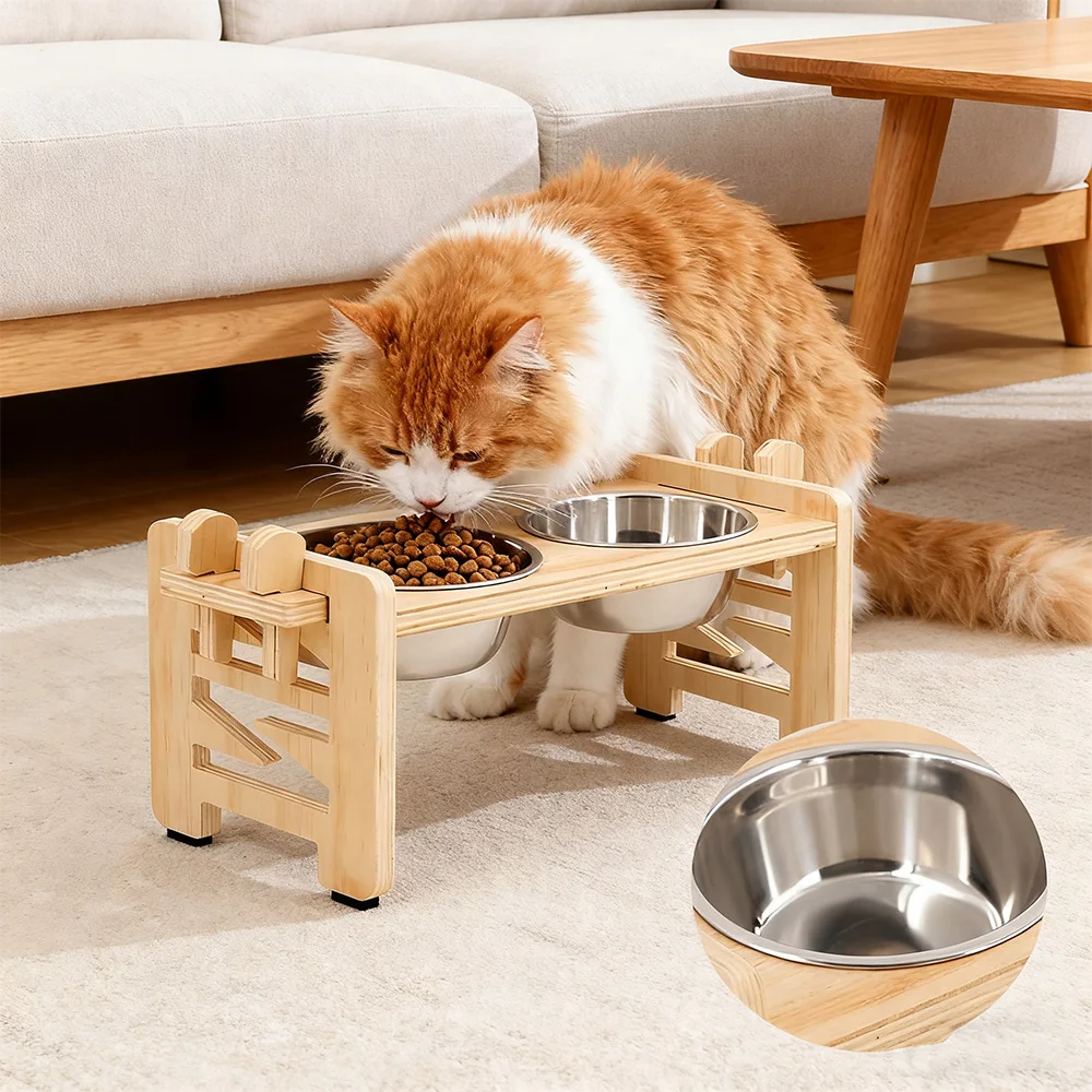 【Sturdy & Easy To Clean】Natural material workmanship provides the elevated dog bowl with well-finished corners and a smooth surface; Two stainless-steel bowls are rust-resistant and dishwashers safe for easy cleaning and maintenance