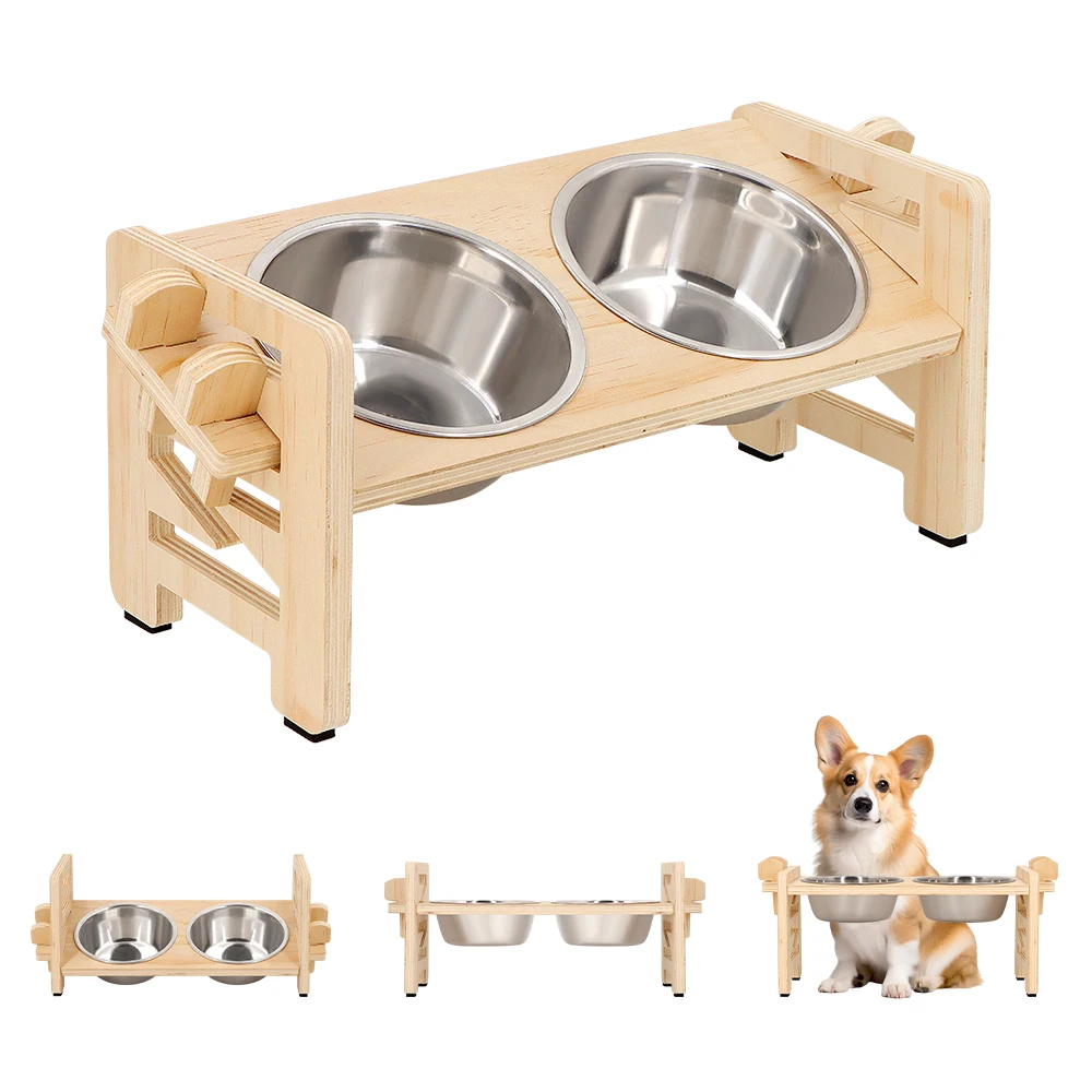 Robusto y fácil de limpiar:La mano de obra del material natural proporciona al cuenco elevado para perros esquinas bien terminadas y una superficie lisa; Dos tazones de acero inoxidable son resistentes al óxido y aptos para lavavajillas para una fácil limpieza y mantenimiento.