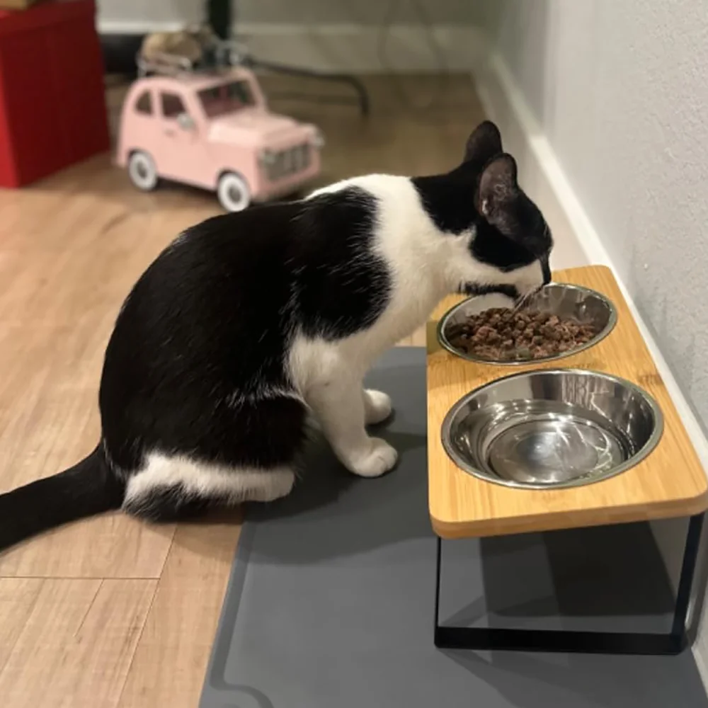 La superficie lisa de madera es resistente al agua y fácil de limpiar, manteniendo el área de alimentación de su mascota limpia y ordenada.