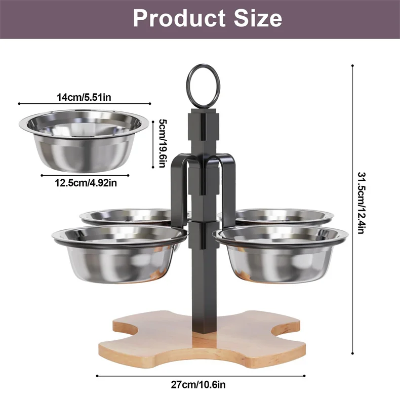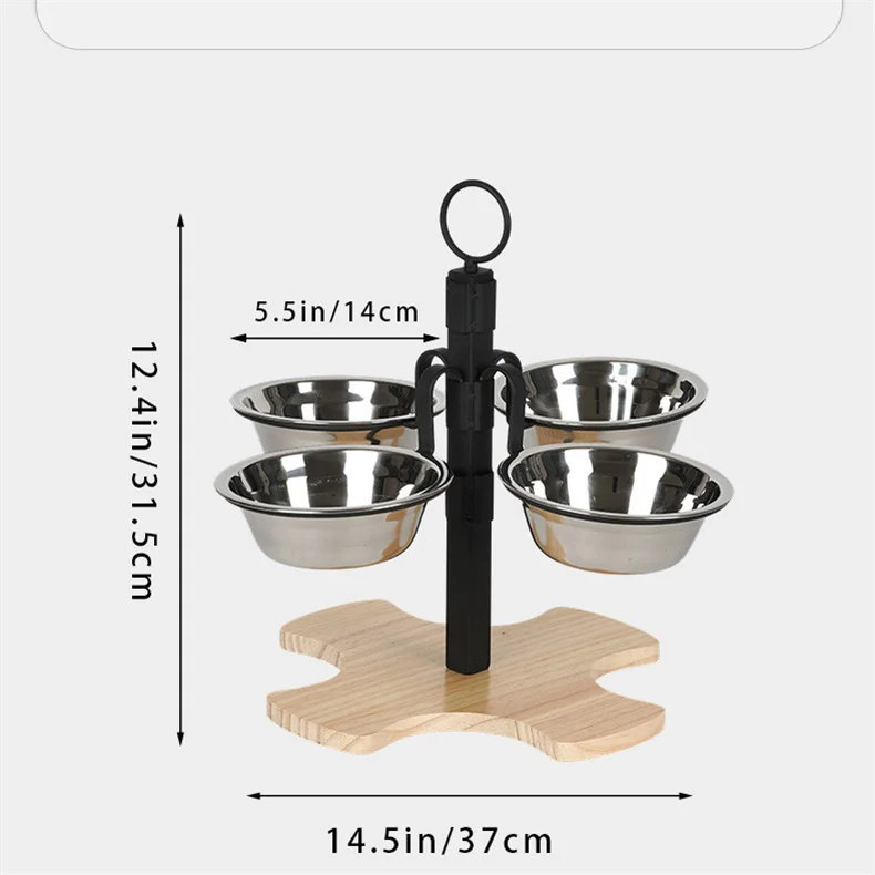 Diseño de 4 tazones de 4 caras: nuestro tazón de comida para perros viene con 4 tazones de agua y comida de acero inoxidable 304 de calidad en 4 lados. Capacidad para satisfacer las necesidades de perros grandes y es fácil de limpiar y apto para lavavajillas.