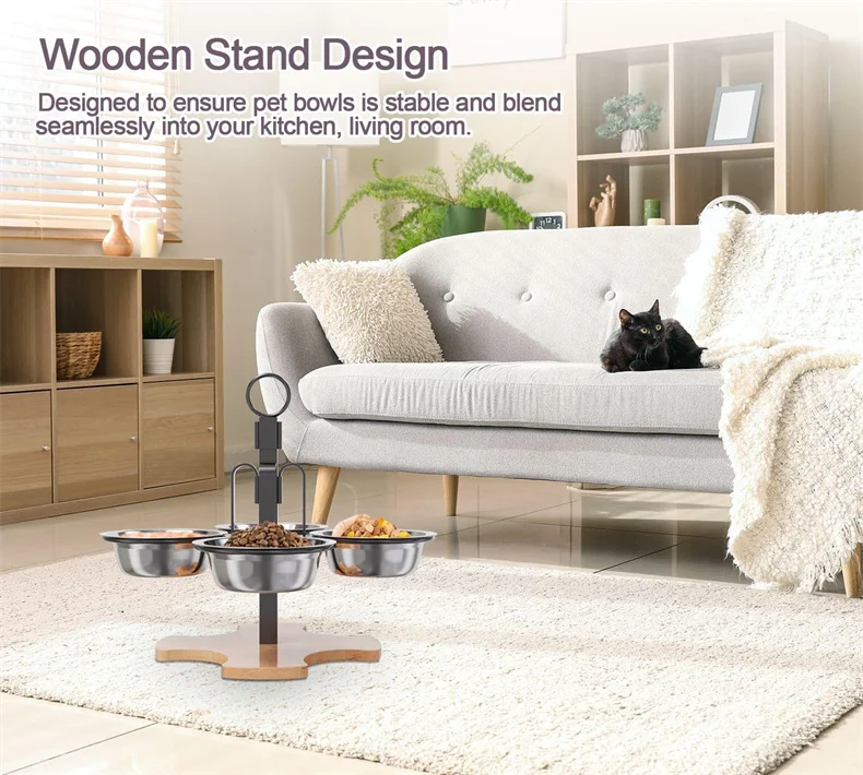3 alturas ajustables: tres alturas ajustables desde arriba para adaptarse a las diferentes etapas de sus mascotas.Ya sea que tenga una raza pequeña, mediana o grande, nuestros tazones elevados para perros brindan la altura perfecta.