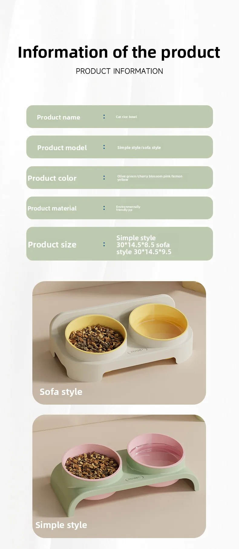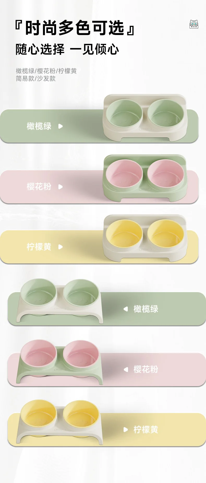 Cuencos para gatos, cuenco de comida para gatos, cuencos dobles, cuenco para perros con boca oblicua, cuenco de alimentación de agua potable que protege la columna Cervical