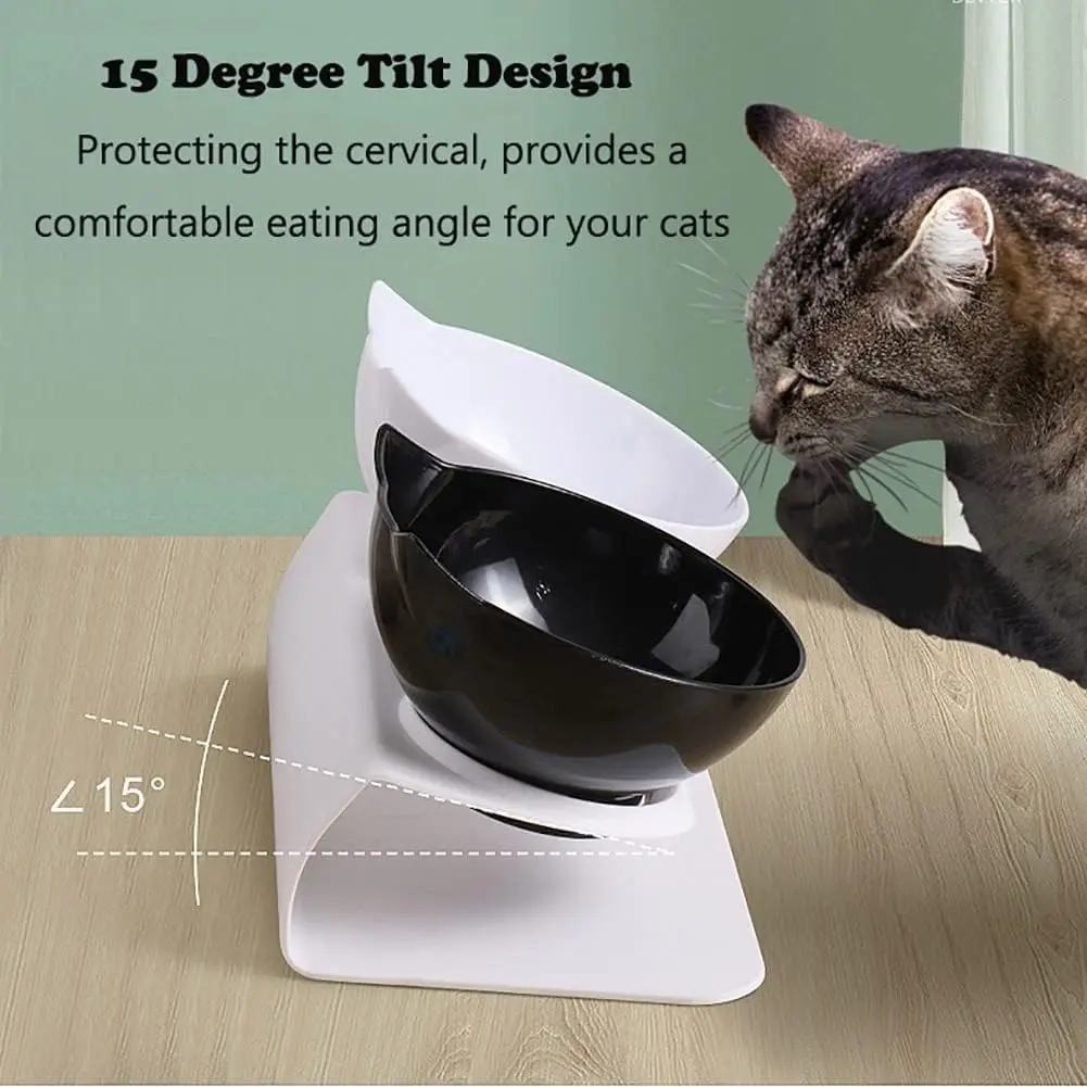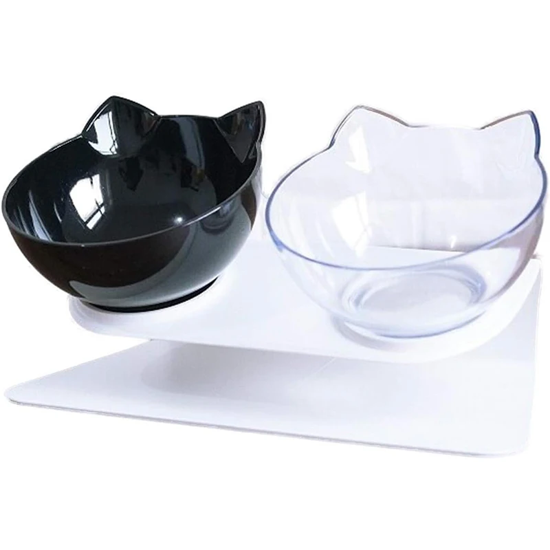Cuencos antideslizantes con doble elevación para gatos con soporte, cuencos de riego y alimentación para gatos elevados de 15 tilos, cuenco alimentador para mascotas con protector de cuello para gatos