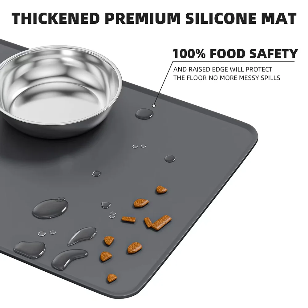 【Alfombrilla de silicona para alimentos】El cuenco de alimentación para mascotas con alfombrilla de silicona puede evitar que gatos y cachorros derramen residuos de comida en el suelo mientras se alimenta, mantener la habitación o la alfombra limpia e higiénica. Combinación de gran valor, tamaño de la alfombra: 48*30 cm