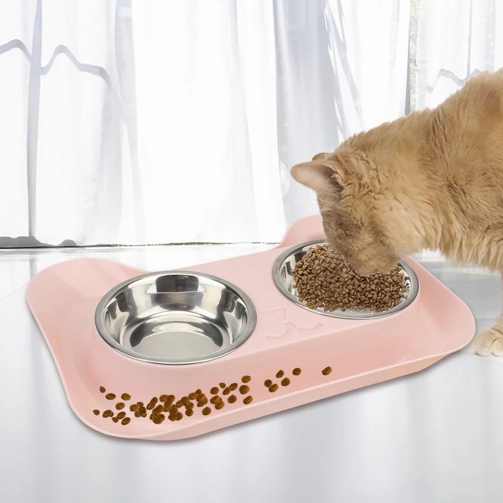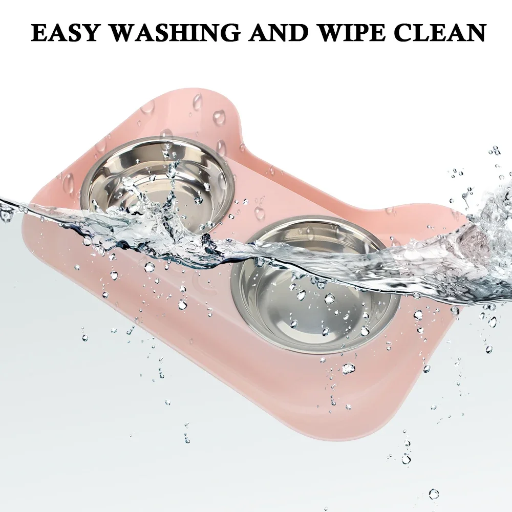 Cuencos para perros, cuenco antiderrames de acero inoxidable para mascotas, tapete antideslizante, cuencos para alimentación de mascotas, dispensador de alimentos para perros y gatos, suministros para mascotas