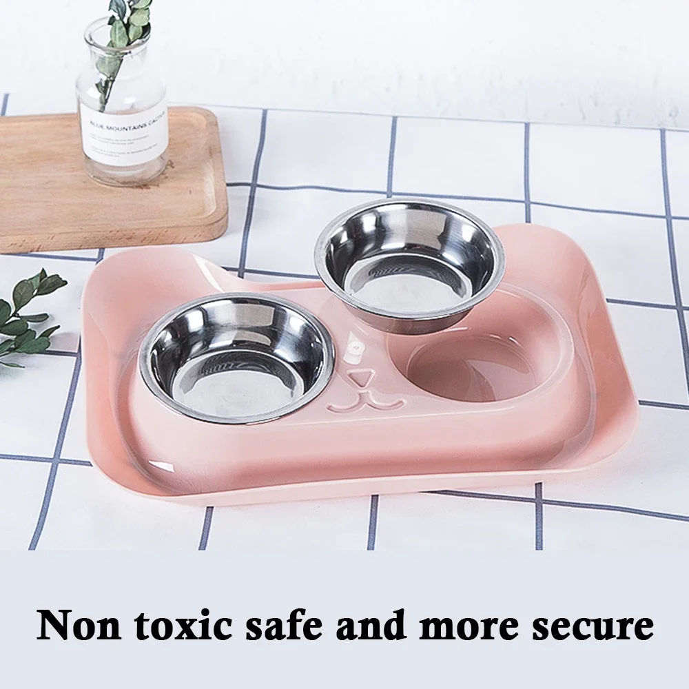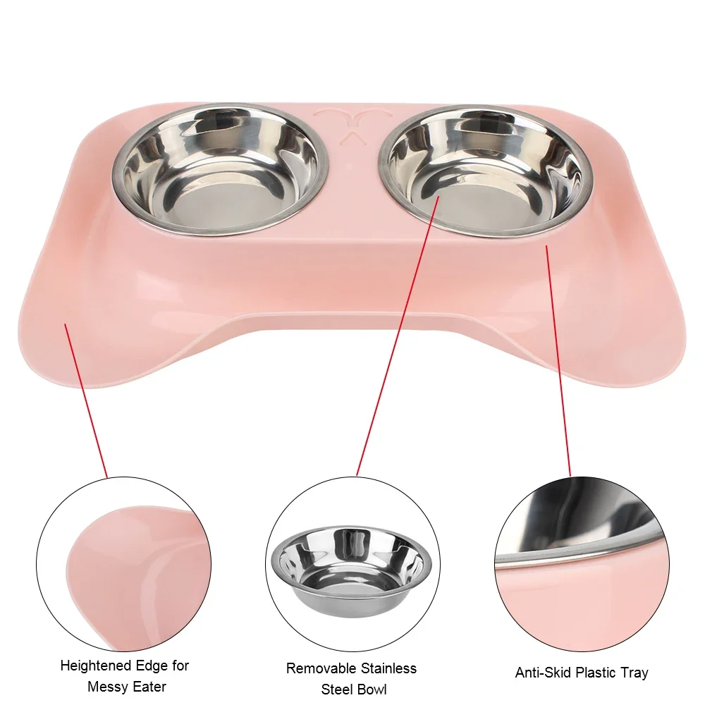Dos tazones para mascotas de acero inoxidable para colocar la comida y el agua del perro por separado, fáciles de quitar o lavar en cualquier momento.