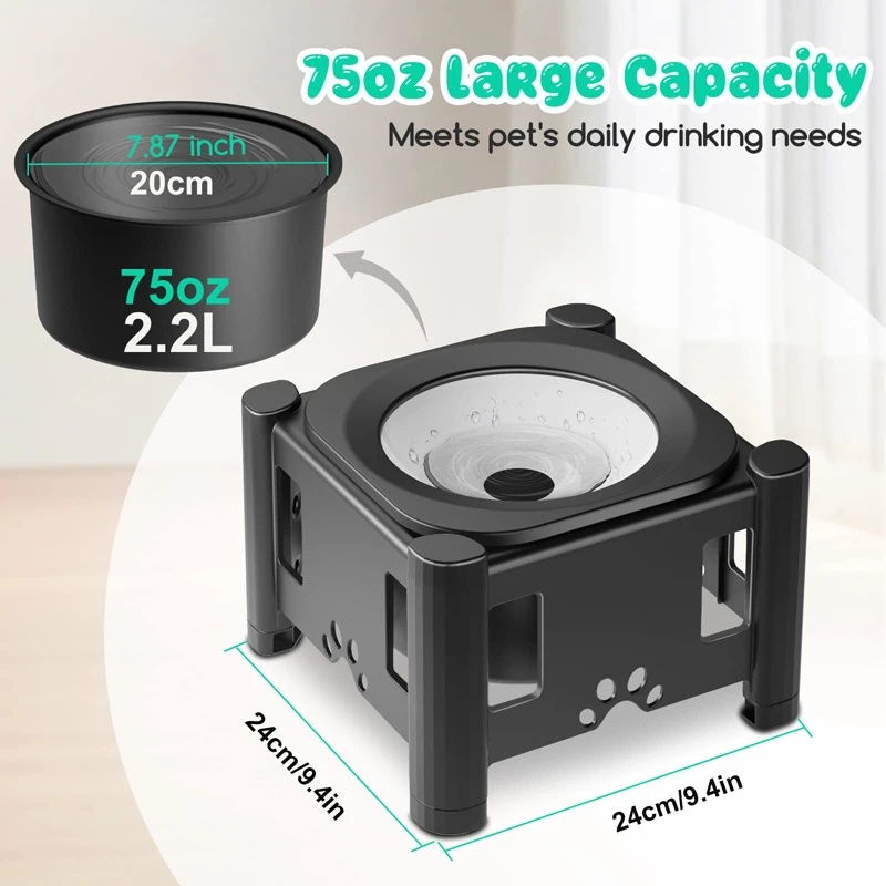 2.2L/ 75oz GRAN CAPACIDAD:El cuenco de agua de gran capacidad de 2.2L/75oz satisface perfectamente las necesidades diarias de bebida de la mascota, que es ideal para resolver el problema de agregar agua con frecuencia.