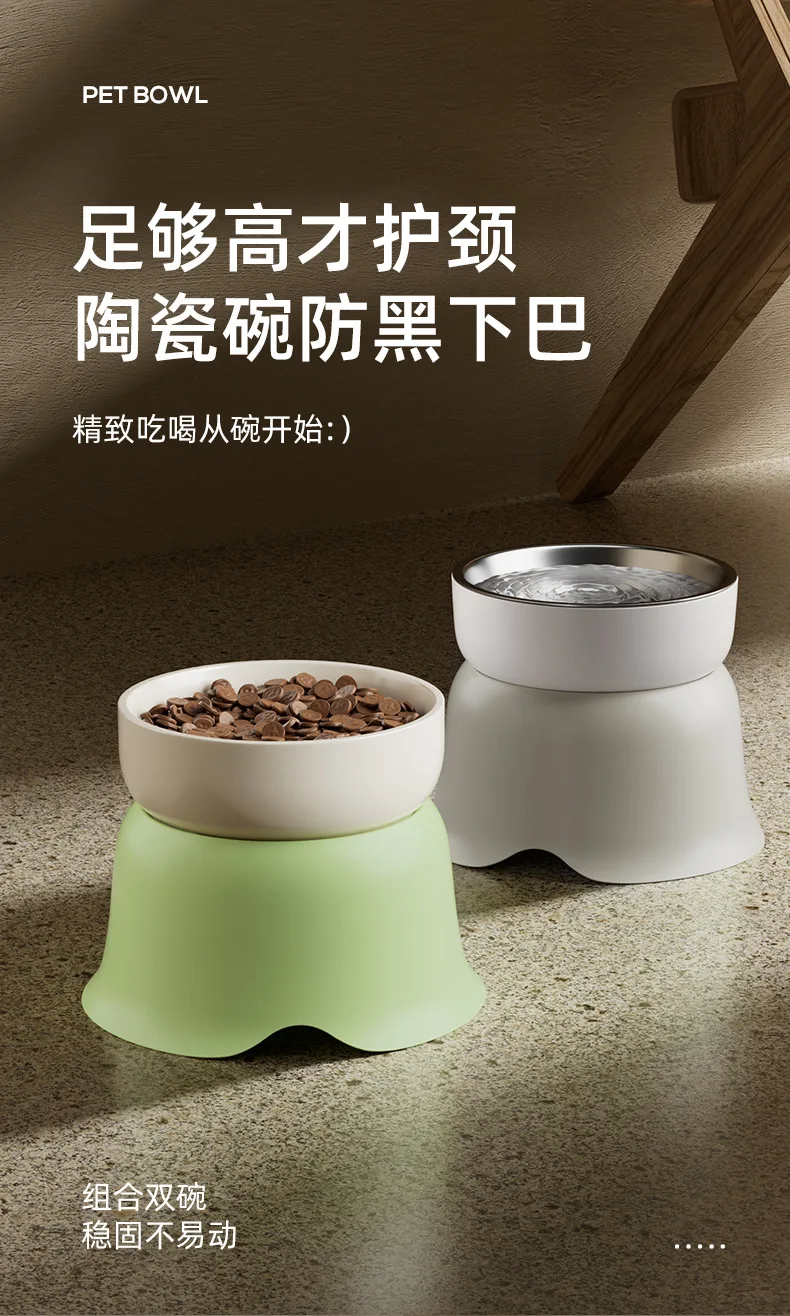 Cuencos para perros y gatos, cuenco de cerámica antinegro para comida de gato, cuenco de agua, protección de acero inoxidable, columna Cervical, comida para perros, cuencos de arroz