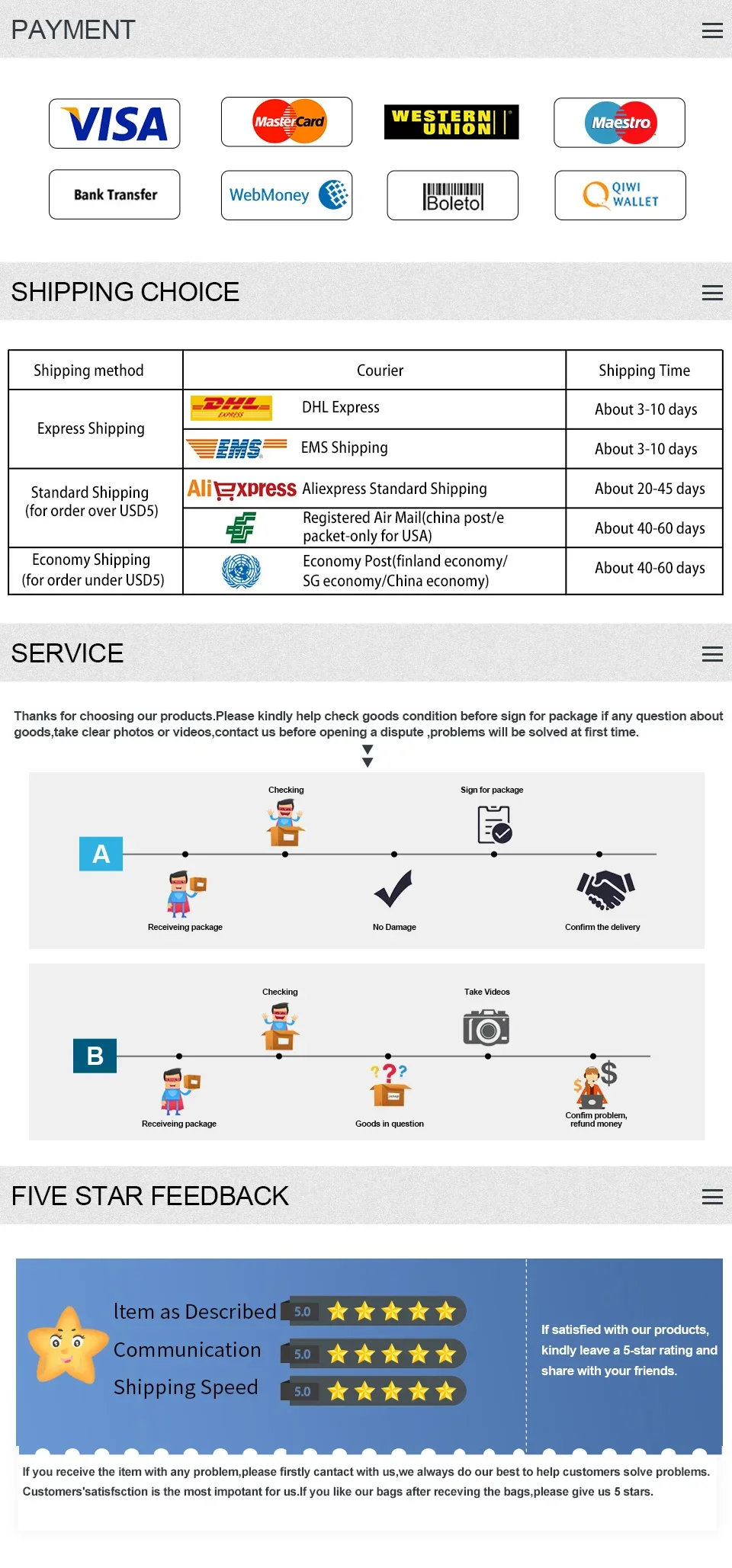 Si tiene alguna pregunta, comuníquese con nosotros antes de dejar un comentario negativo, haremos todo lo posible para servirle, ¡gracias por su comprensión!