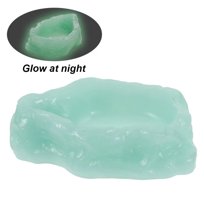 Cuencos para reptiles de resina noctilucosa, plato de gusano para alimentación, alimentador de lombriz de comida, cuenco de agua para reptiles, Rana, Gecko, serpiente, arañas, tortugas, 1 ud.