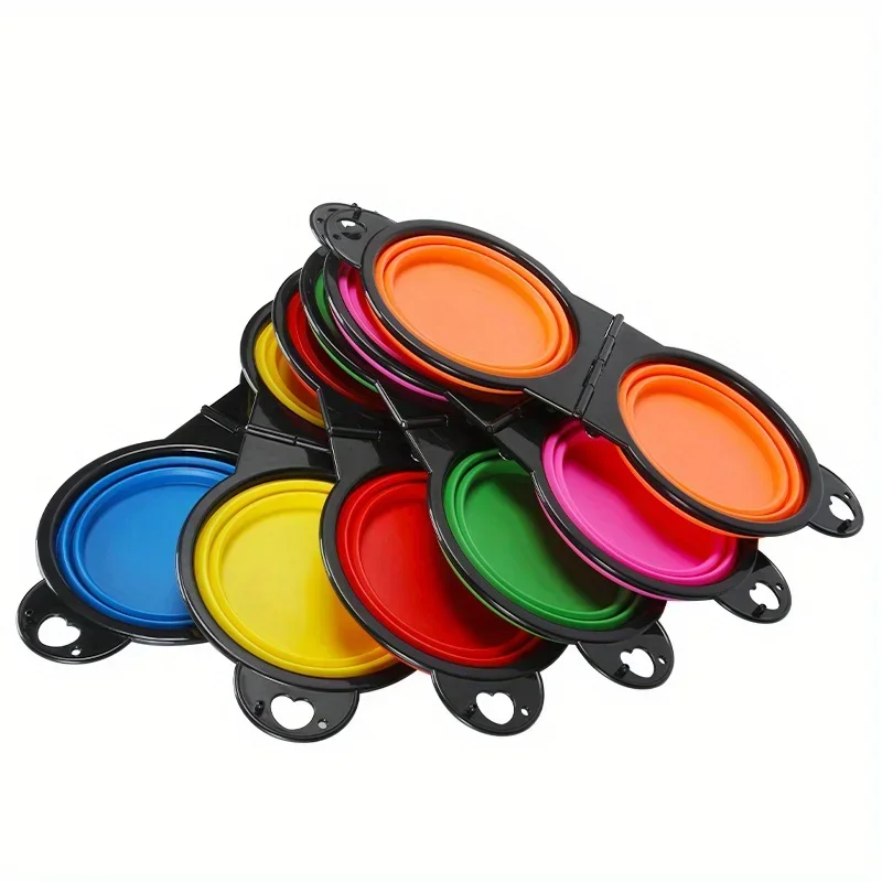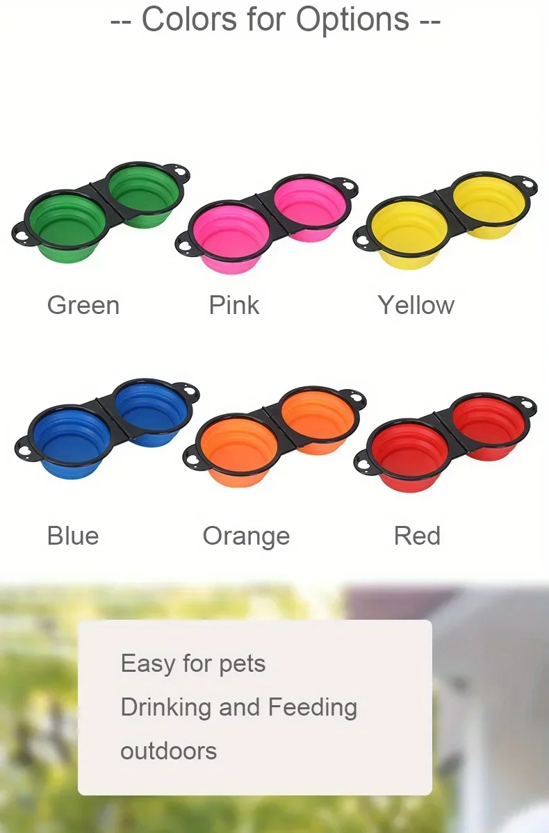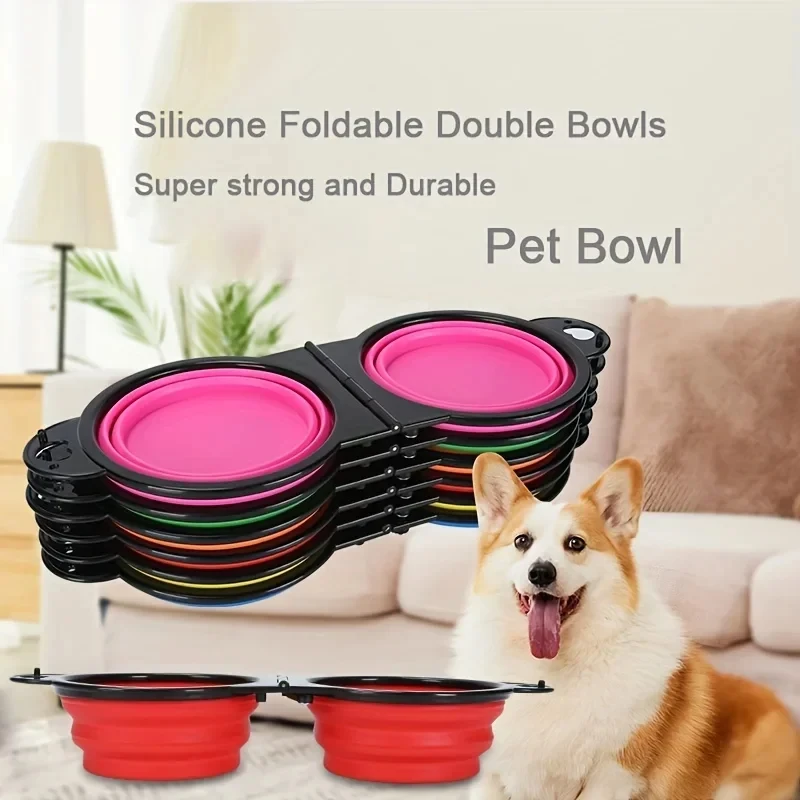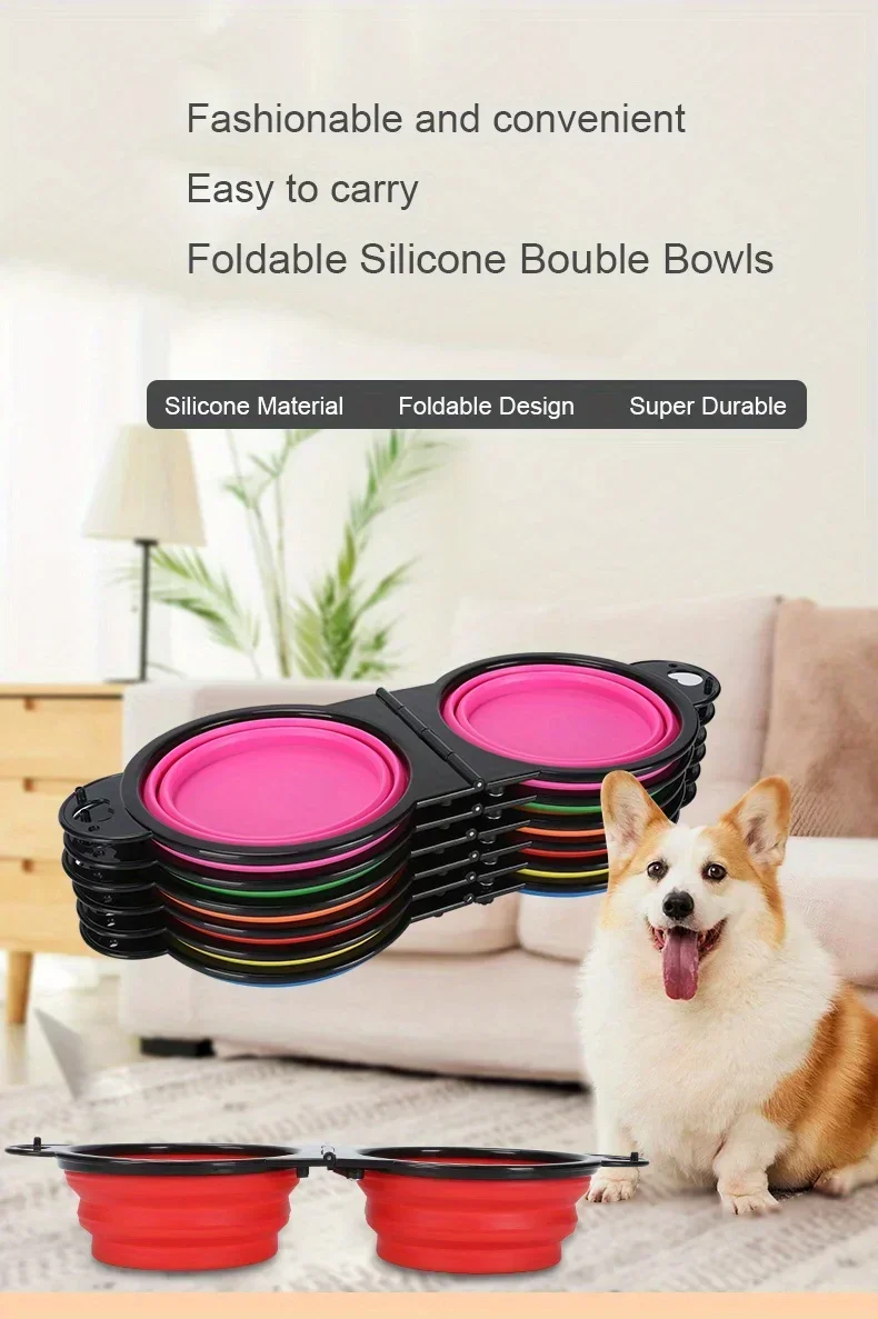 Cuencos de viaje para perros de silicona colgables, cuencos dobles 2 en 1, cuenco de comida plegable para perros, cuenco de agua para caminar al aire libre, acampar y viajar