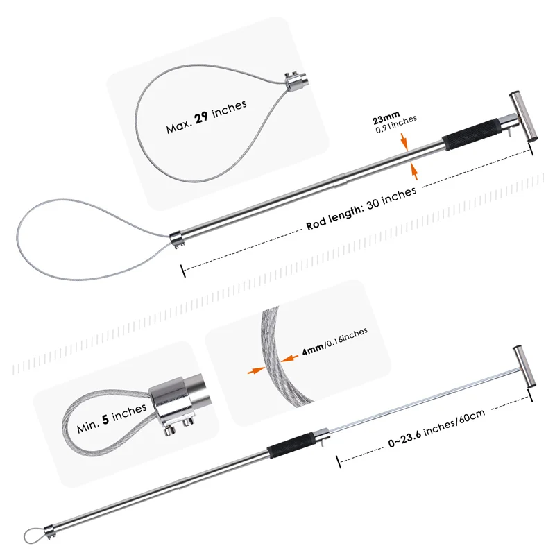 1. El poste del receptor está hecho de material de acero inoxidable, resistente y fácil de usar. Cuerda de alambre gruesa, tornillo doble fijo, diámetro de hasta 4mm, longitud ajustable, no es fácil de romper.