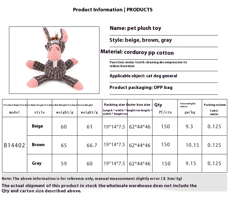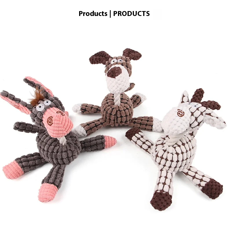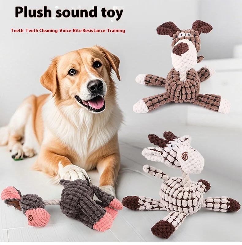 Cuerda de algodón para mascotas, juguete de peluche de burro, limpieza de dientes, granos de maíz, sonido interactivo, entrenamiento, juguete para perros
