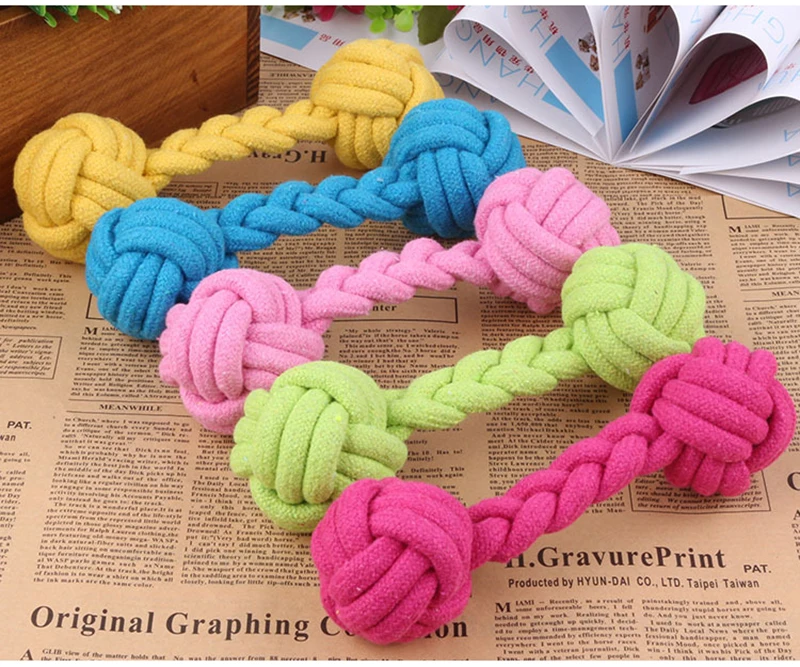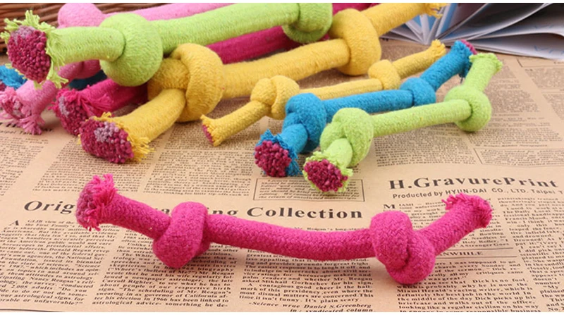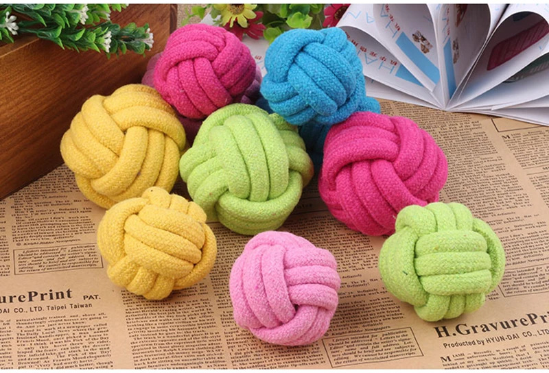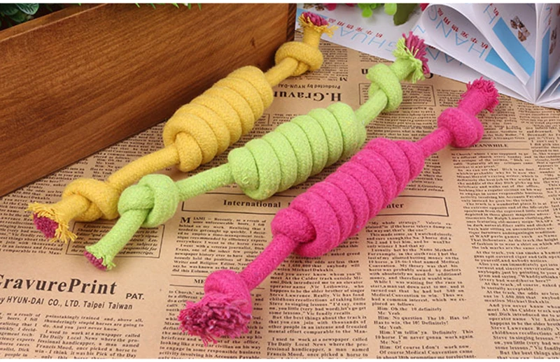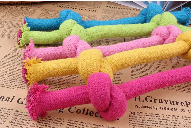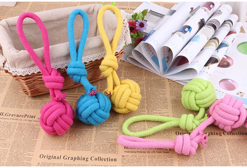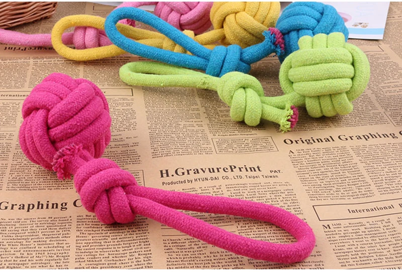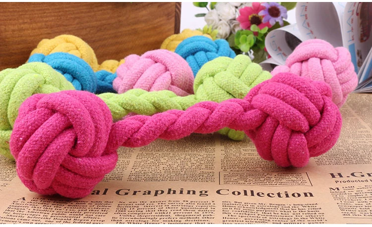 Cuerda de algodón para perros, juguetes de colores dulces para mascotas, limpieza interactiva de dientes, pelota de nudo para cachorros pequeños, juguetes para masticar, Color aleatorio