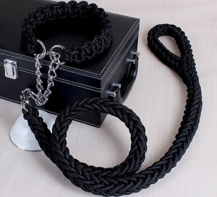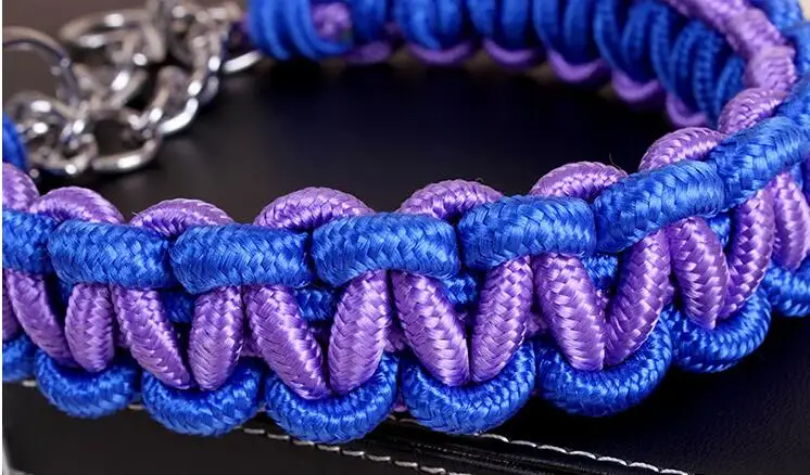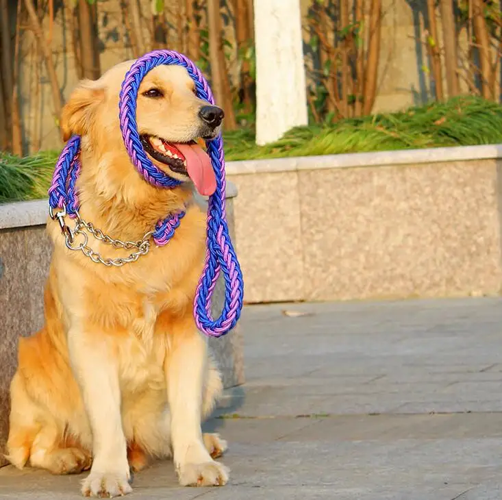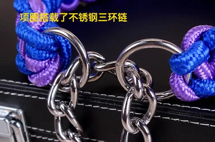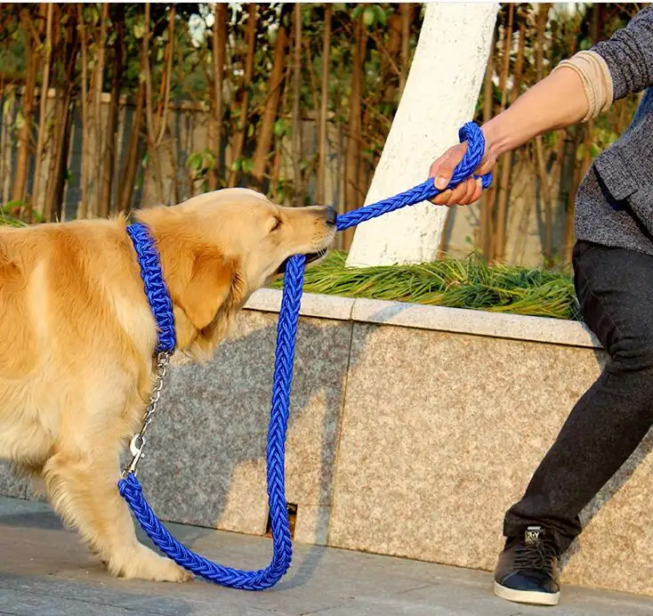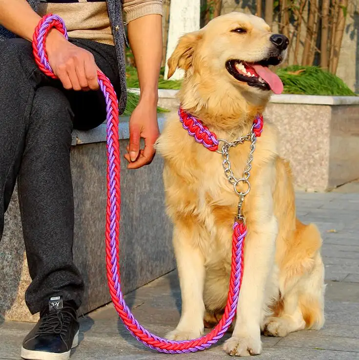 Correa de cuerda de doble hebra para perros grandes, hebilla de cadena de Metal P, Color de contraste, juego de Collar de cuerda de tracción para mascotas para perros grandes, longitud de 1.2m