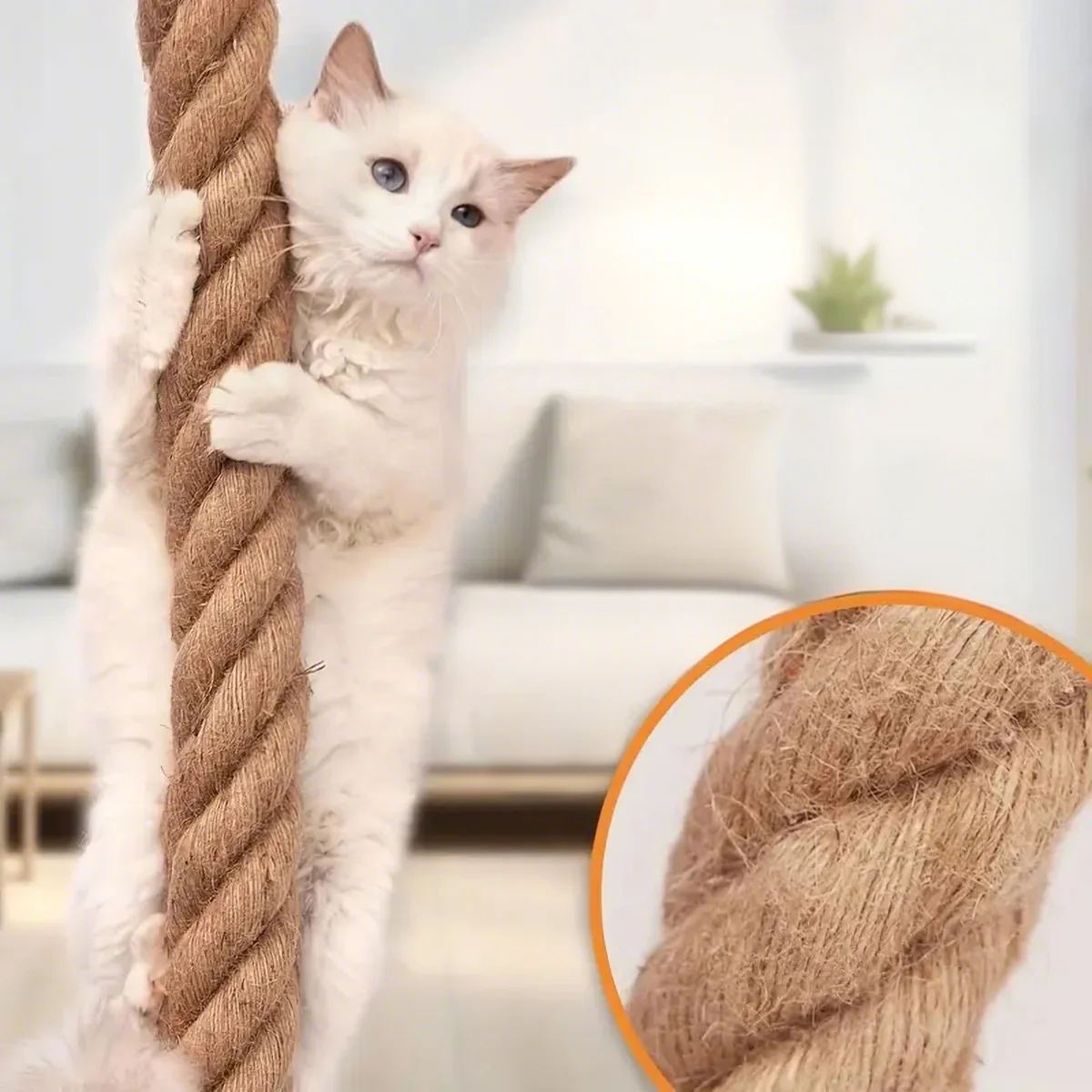 Bobinado de fibra de sisal natural seleccionado, proceso de tejido apretado para evitar que se afloje, satisfaciendo las necesidades de los gatos para rascarse y al mismo tiempo reducir el desgaste de los muebles.También utiliza verticalmente el espacio, evitando que los gatos compiten por el espacio de actividades y despiéndose de los problemas de ocupación territorial de los tradicionales marcos trepador de gatos.