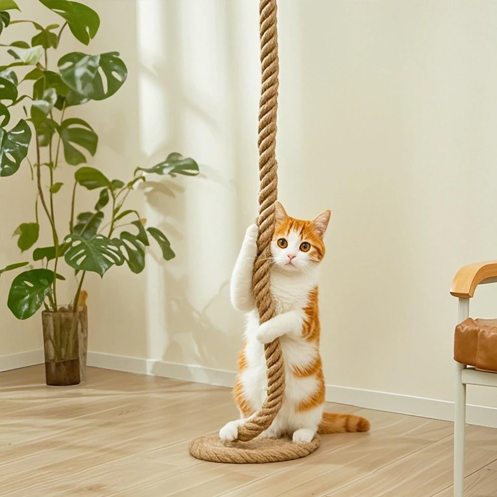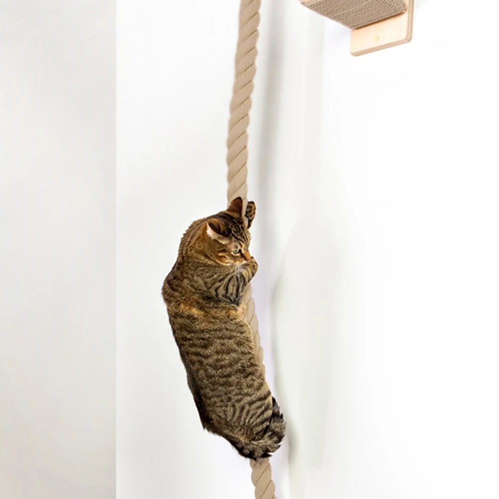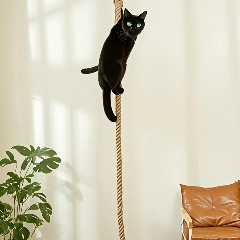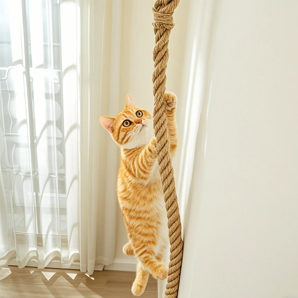 This ceiling cat climbing rope is a fun toy and exercise facility designed specifically for cats. Installed on the ceiling, it creates a vertical activity space for cats, which not only satisfies the cat's natural love of climbing, but also adds fun to the home. It also helps cats exercise and sharpen their claws.