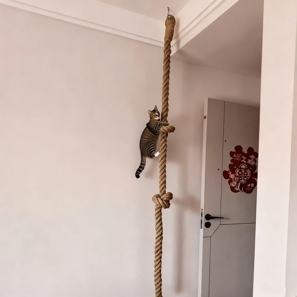 Cuerda de escalada para gatos montada en el techo con cuerda de actividades para gatos colgante de sisal para que los gatos de interior escapen, jueguen y hagan ejercicio