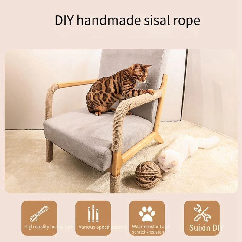 3. Creatividad DIY, cuerda de sisal hecha a mano, resistente al desgaste y a los arañazos, sin virutas, El ajuste general de la cuerda es apretado y el efecto de molienda de garras es bueno