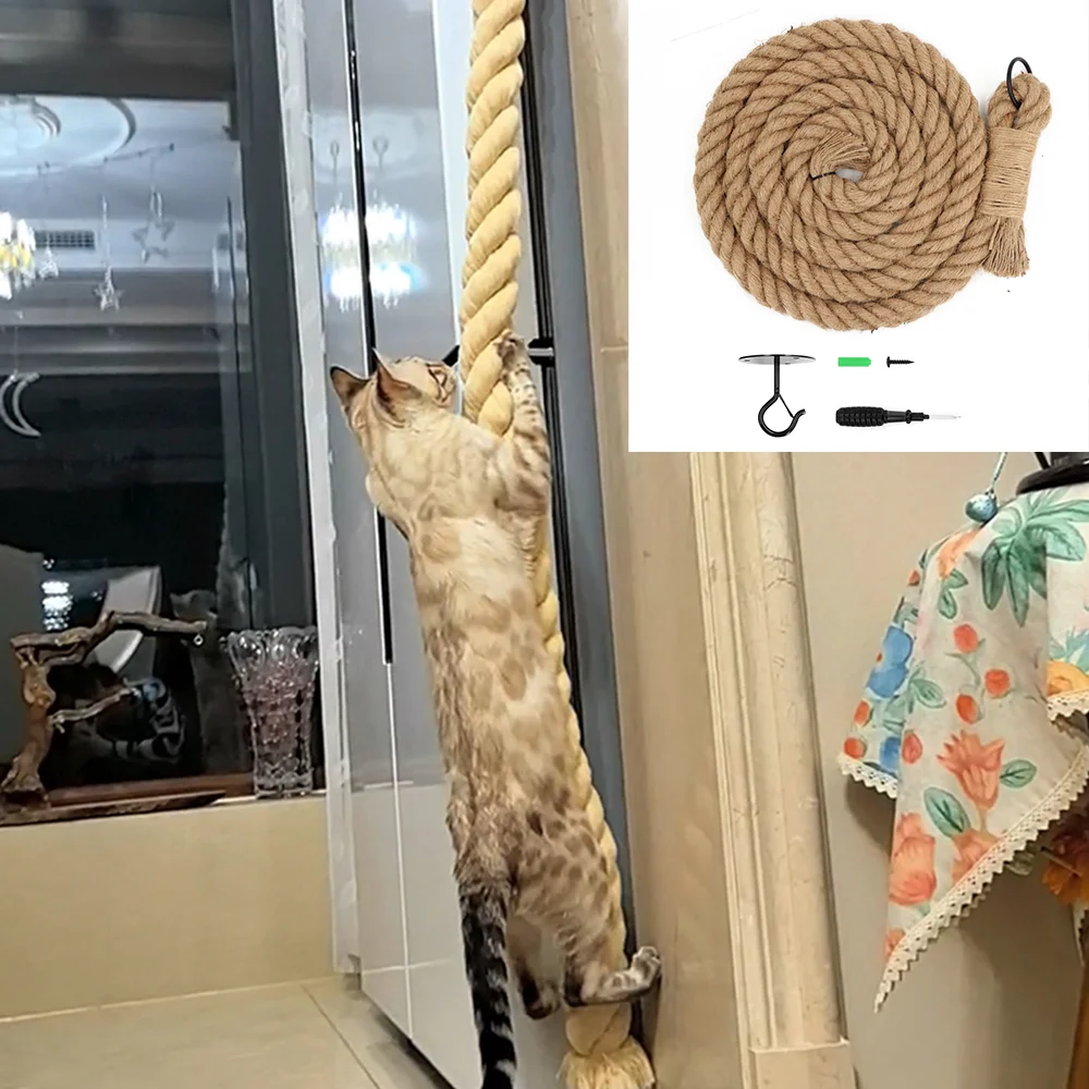 Cuerda para rascar gatos en el techo, cuerda para gatos de sisal resistente al desgaste y segura, adecuada para gatos grandes para escalar