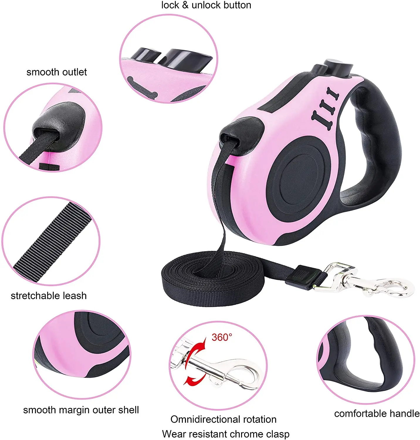 Cuerda de tracción automática para mascotas, correa/cinta de nailon fuerte, 3m/5m, cuerda retráctil para perros pequeños y medianos