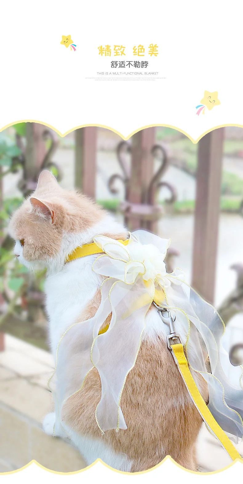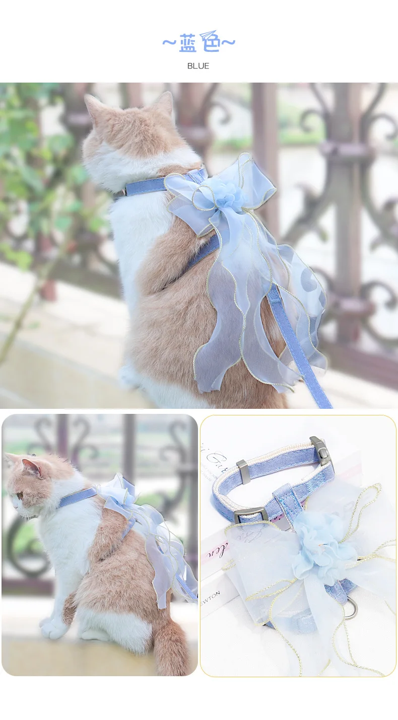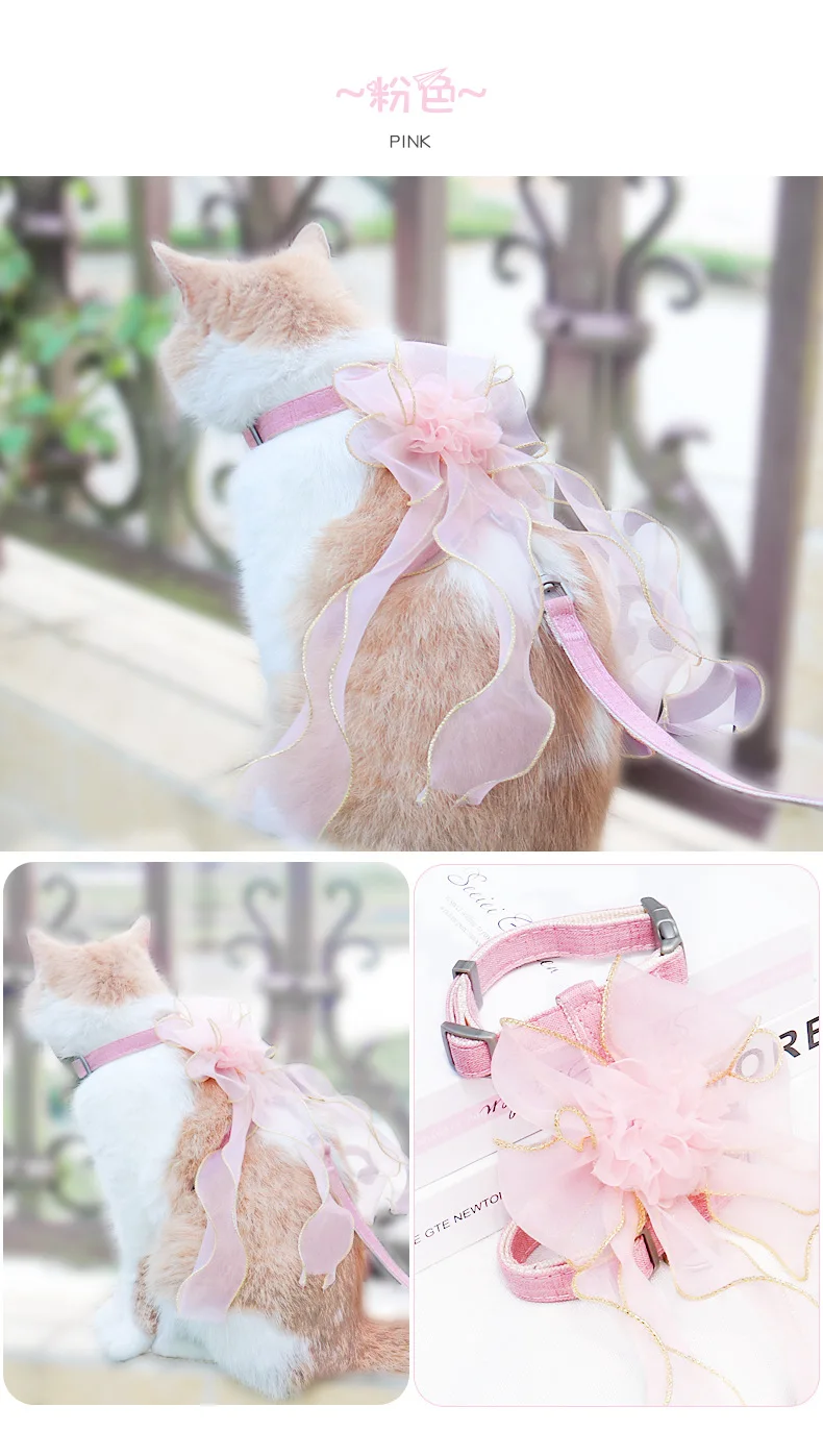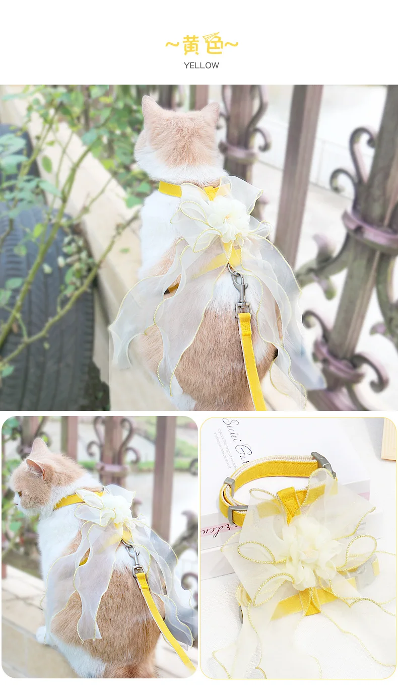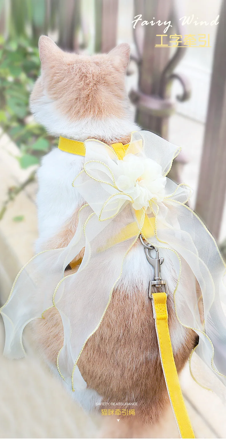 Cuerda de tracción para mascotas, lazo de gasa de hadas, correa de pecho para evitar que se separe del gato y el perro
