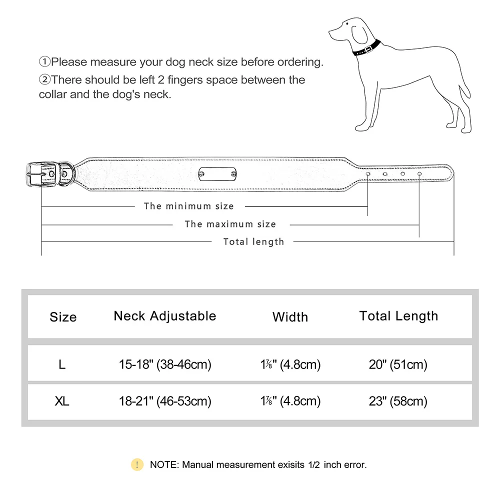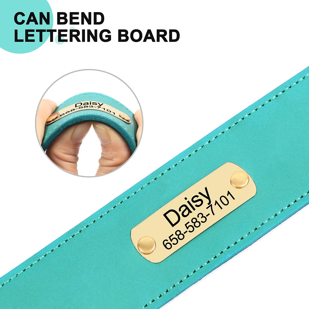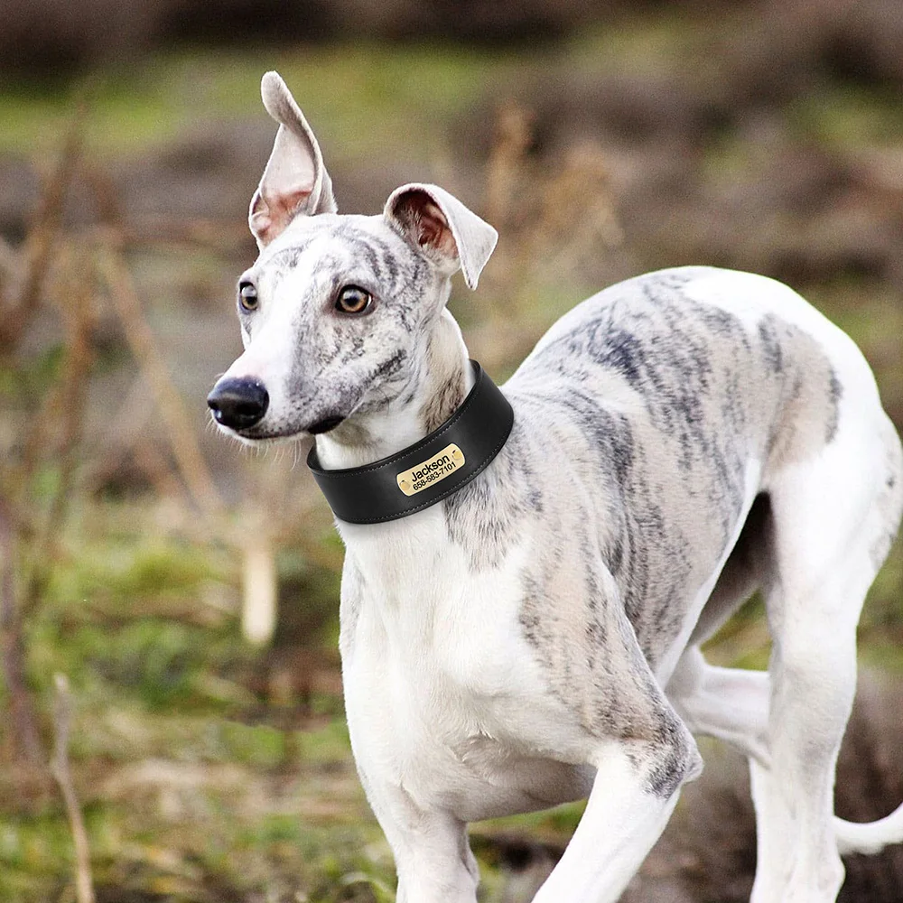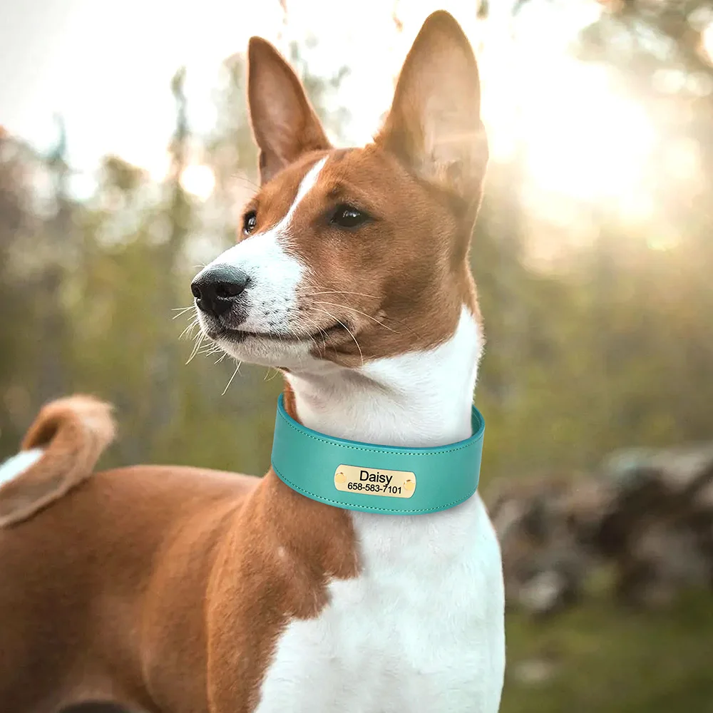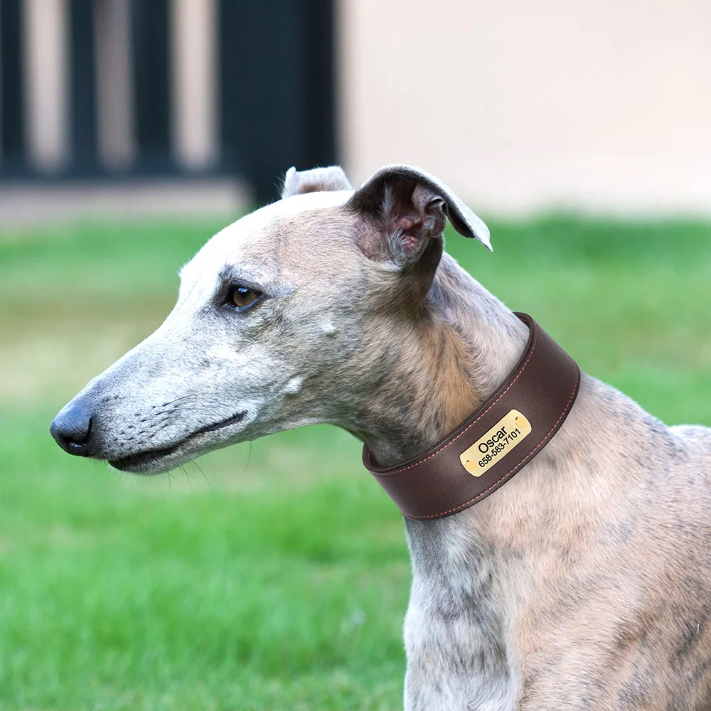 Collar de cuero para perro grabado personalizado, collares de cuero ancho para perros, nombre personalizado, placa de identificación antipérdida para perros grandes y grandes
